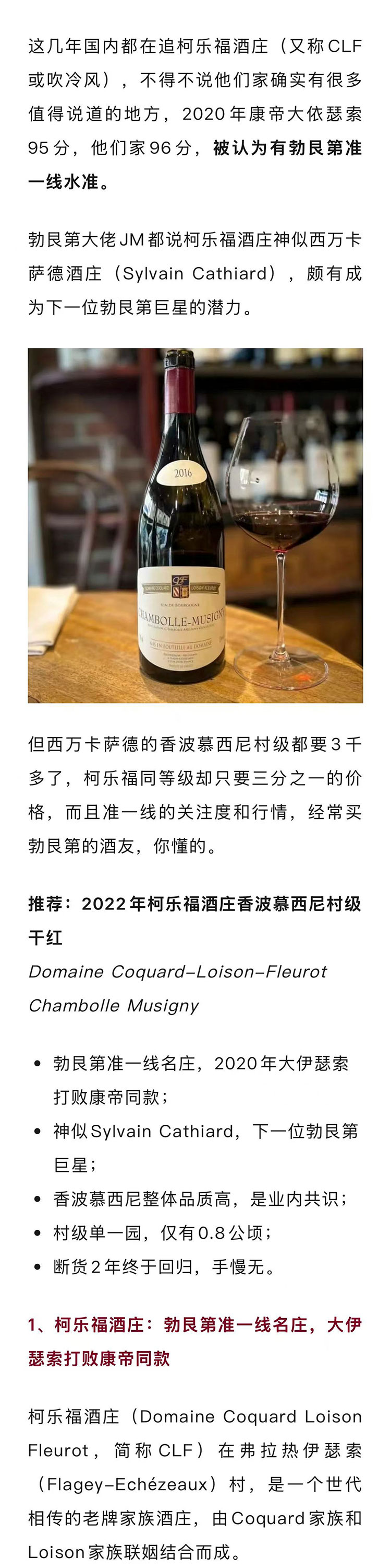 【准一线名庄】法国勃艮第2022年柯乐福酒庄香波慕西尼村级黑皮诺干红