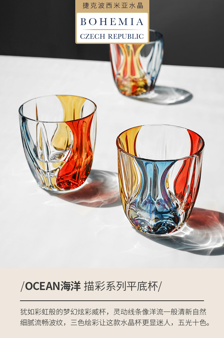 捷克波西米亚海洋彩绘酒杯320ml