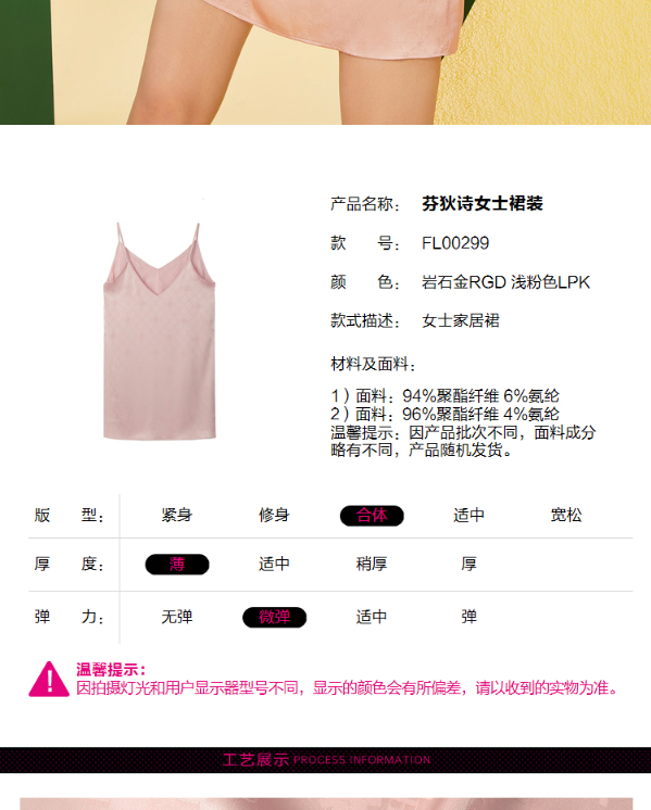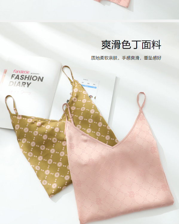 芬狄诗春夏国潮睡裙女清凉简约时尚吊带家居短款睡裙FL00299