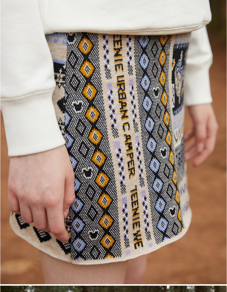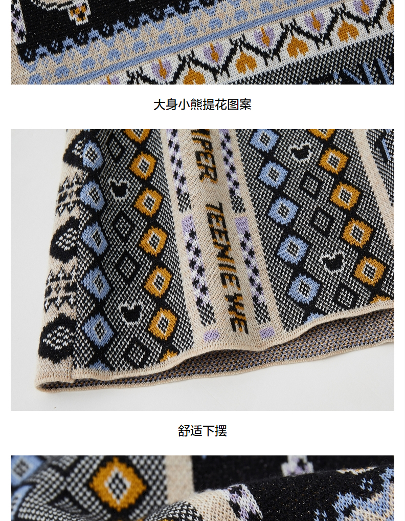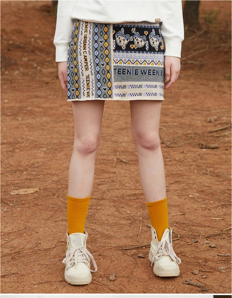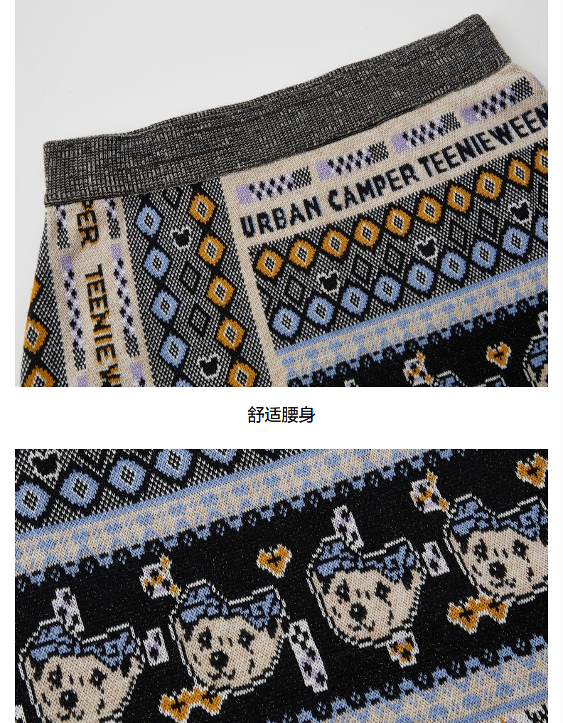 TeenieWeenie小熊提花半身裙高腰显瘦针织裙包臀裙短裙女秋冬新款TTWK214901T