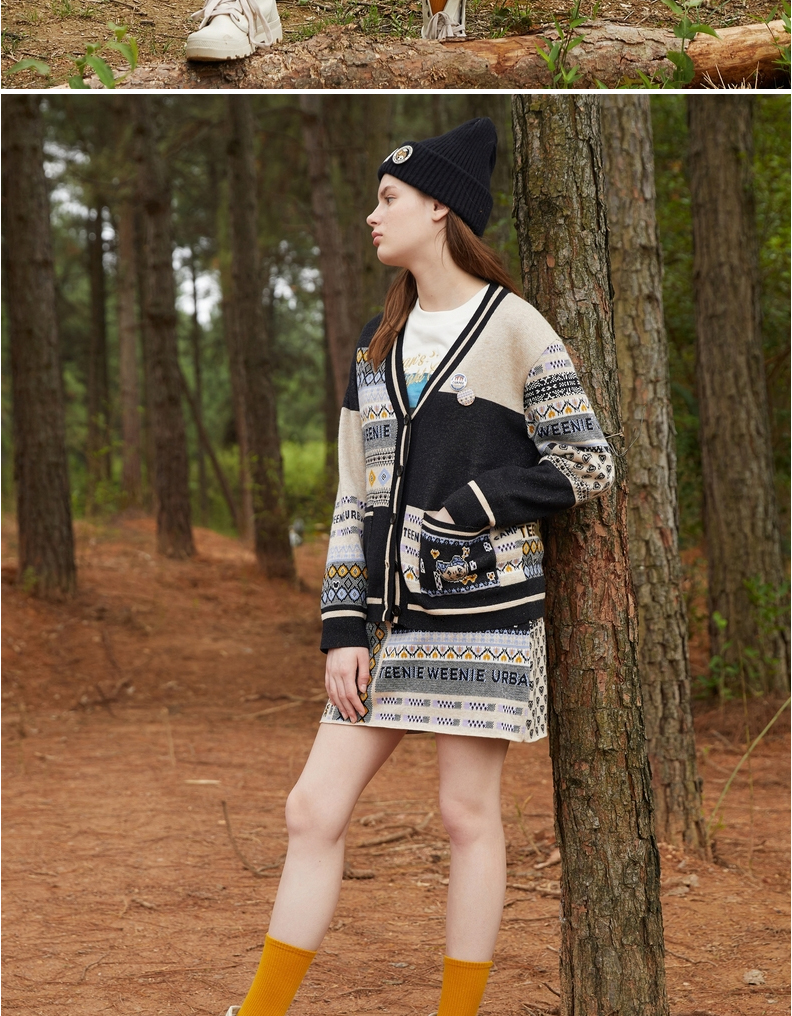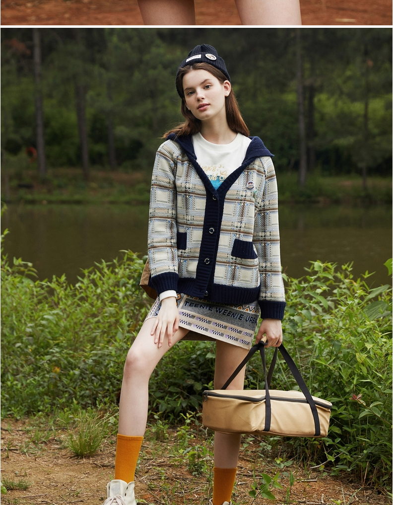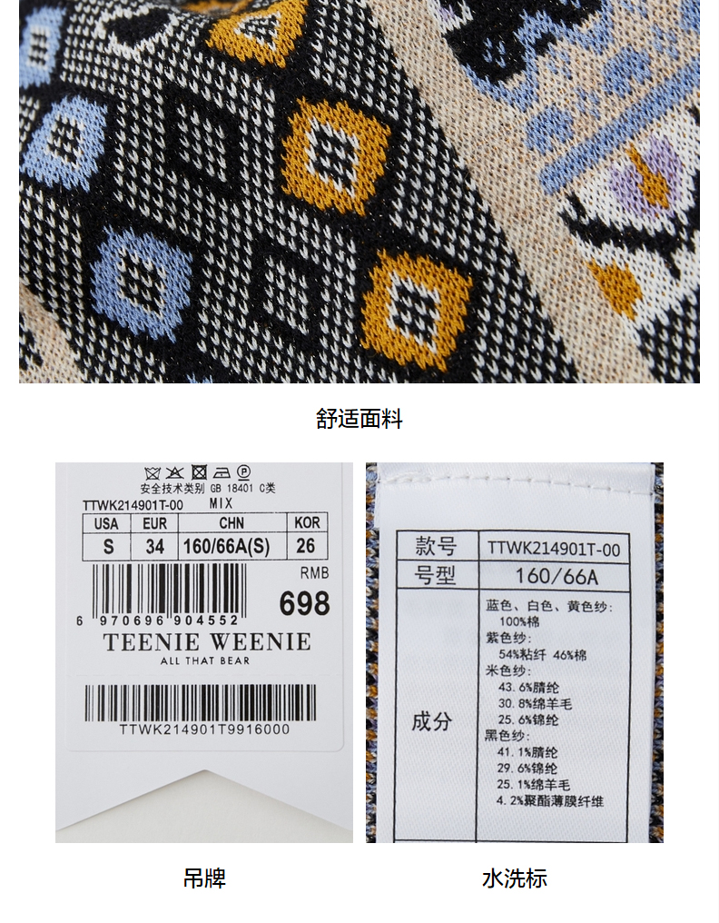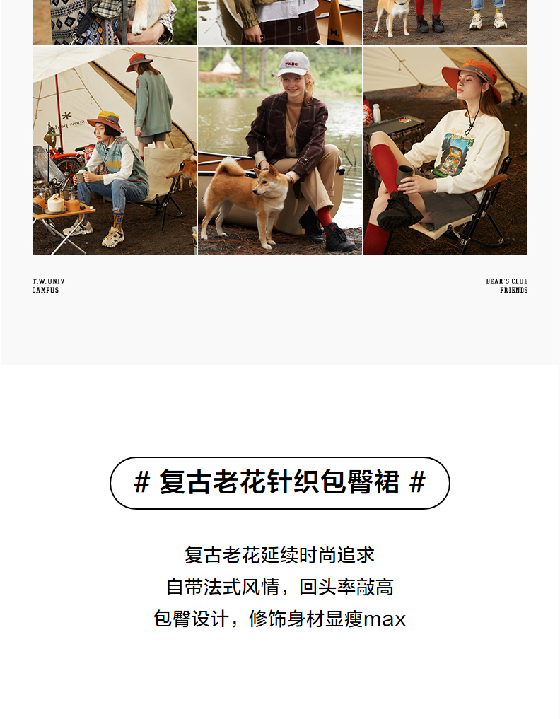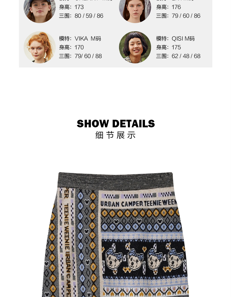 TeenieWeenie小熊提花半身裙高腰显瘦针织裙包臀裙短裙女秋冬新款TTWK214901T