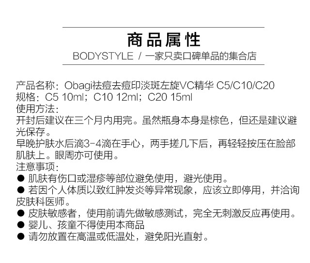 【换季精华】Obagi祛痘去痘印淡斑左旋VC精华 C5/C10/C20(预售15天)