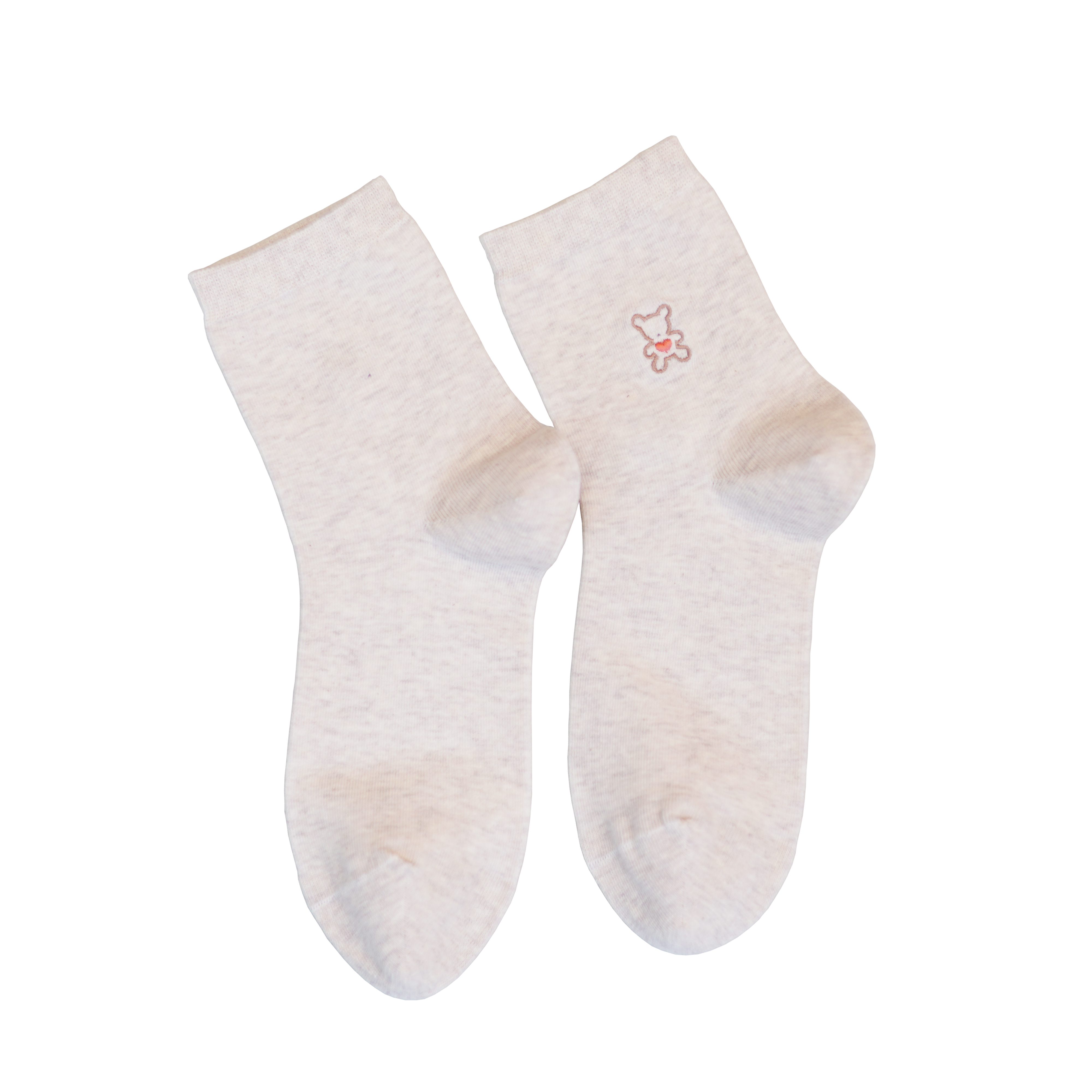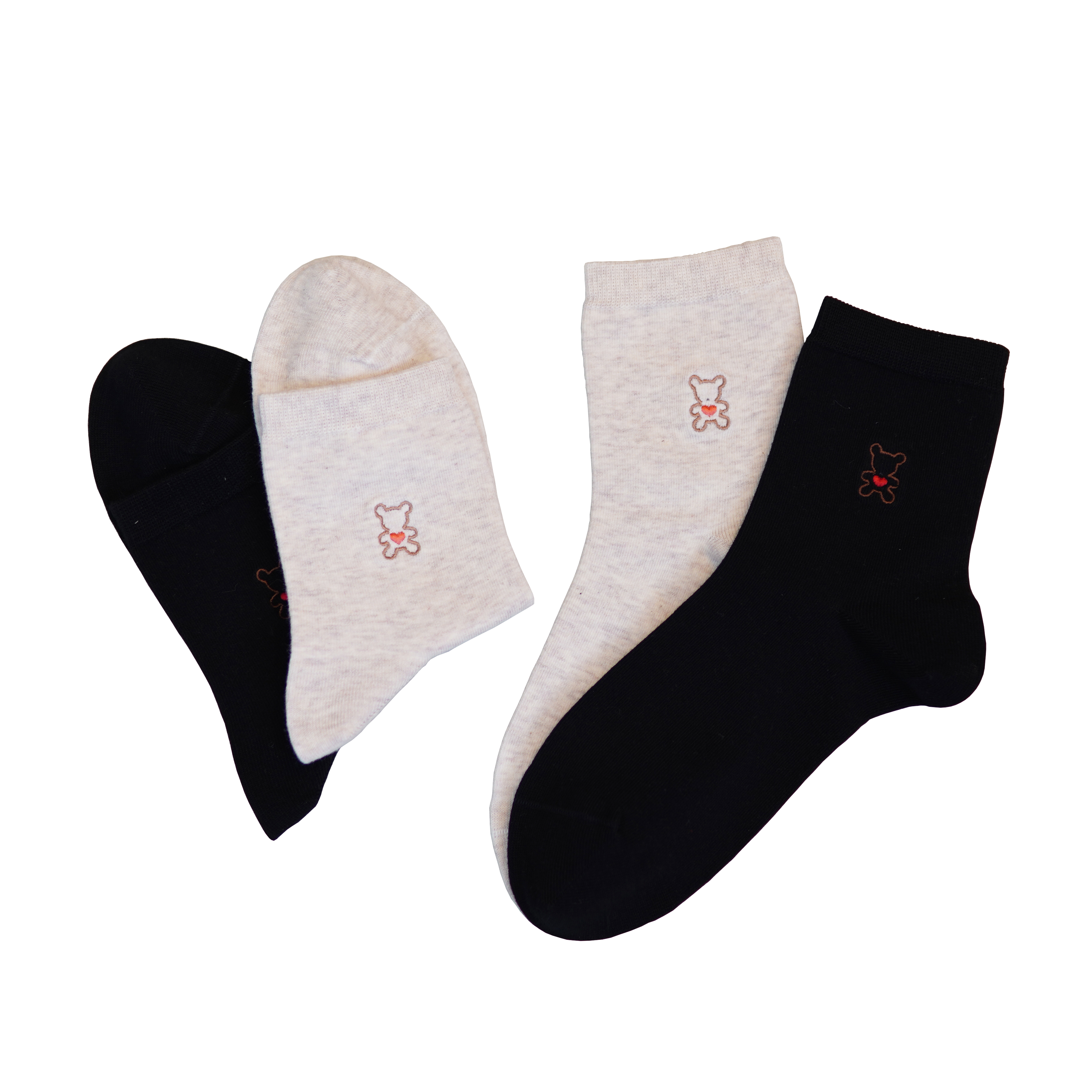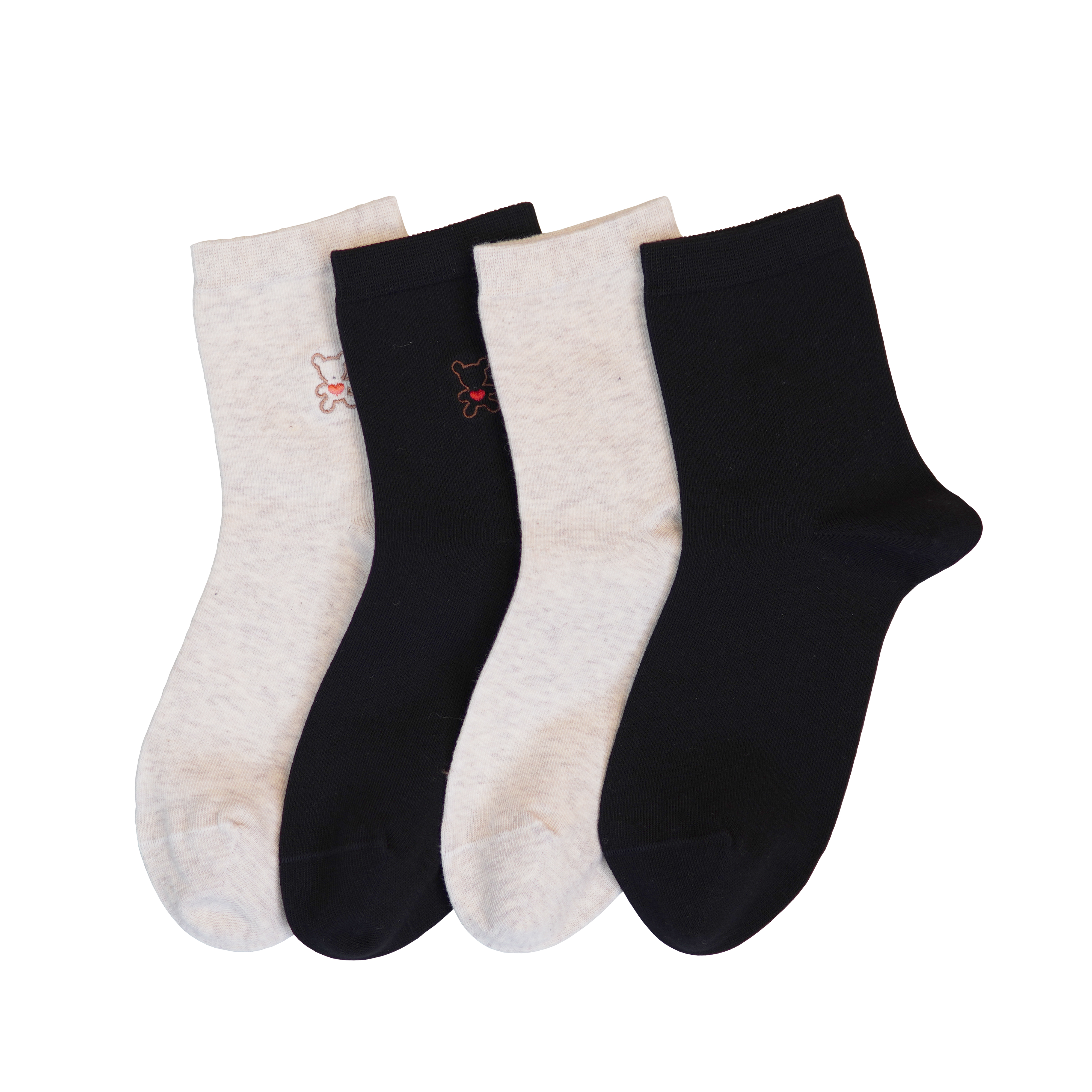 【2双装】女士中长筒棉袜刺绣休闲女袜素色袜子四季棉袜【6双6折】【2422216】