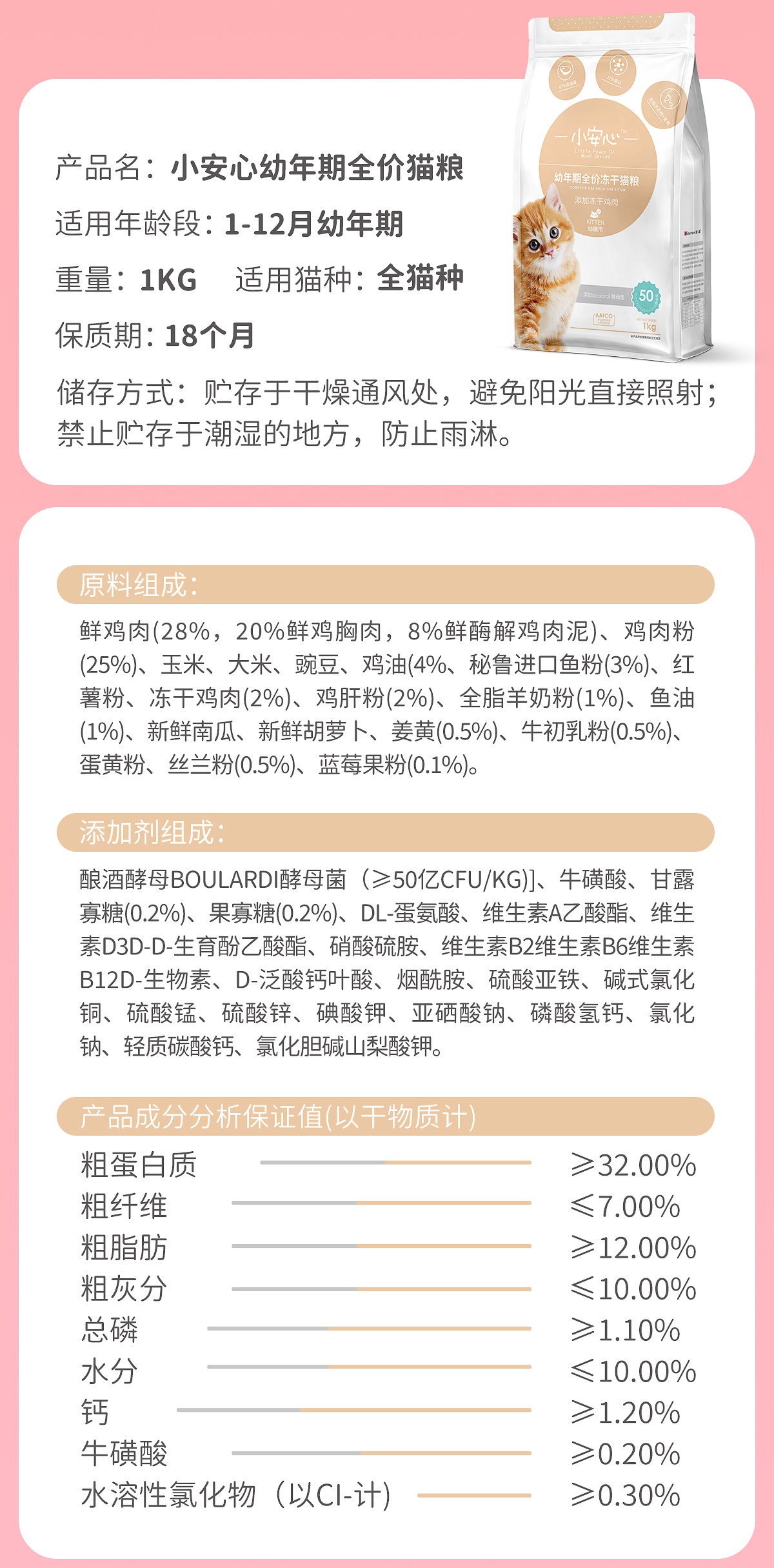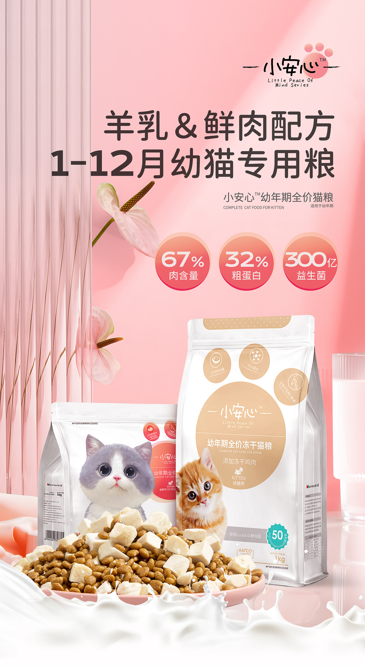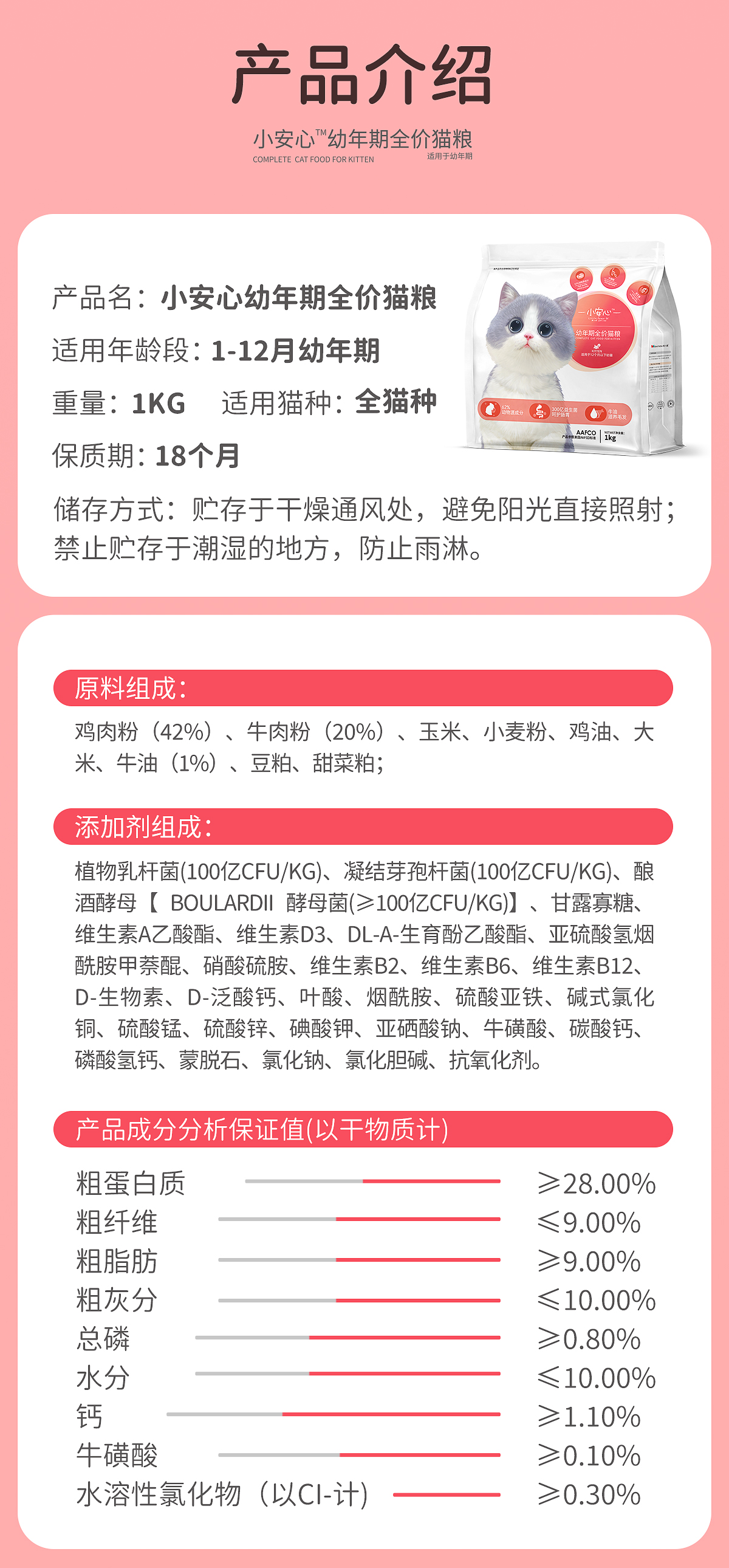 【双12囤粮热卖】小安心幼猫粮1-6月奶糕羊奶味幼猫粮2斤*4包-营养基础款