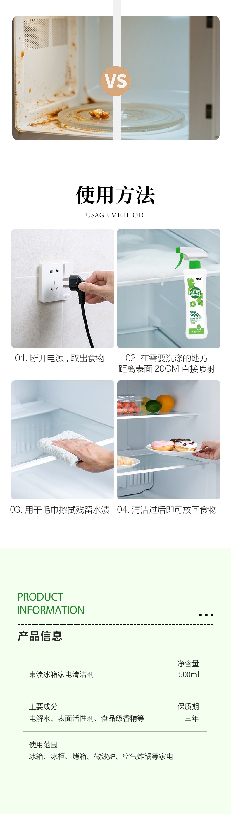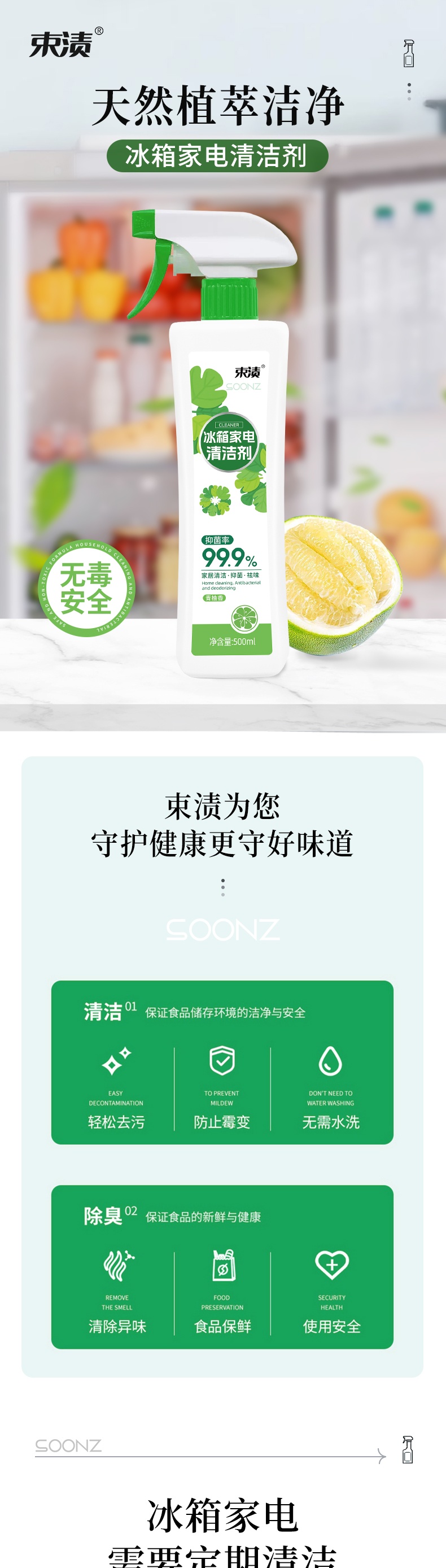 【自营】束渍-冰箱家电清洁剂(500ml)去污去渍除味杀菌清洁