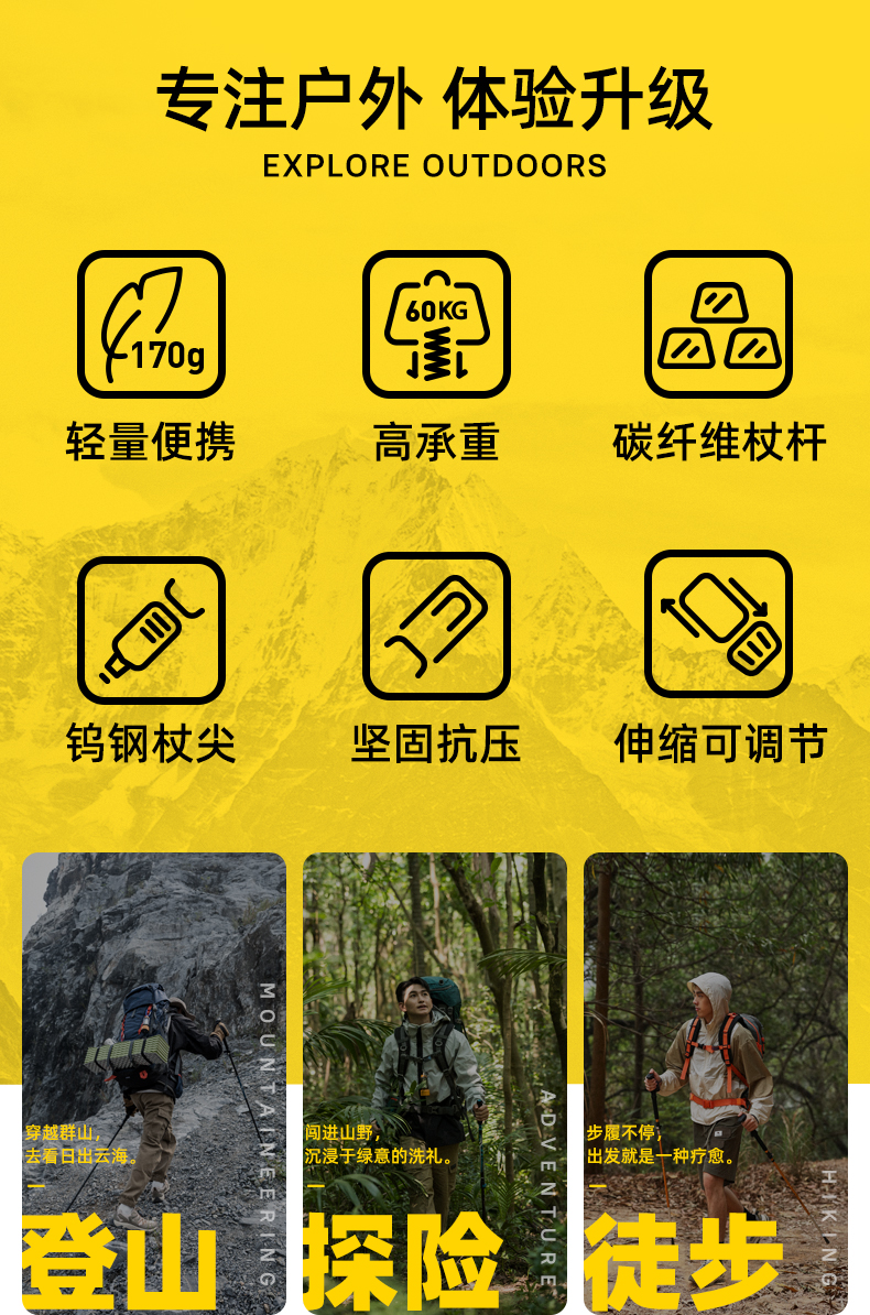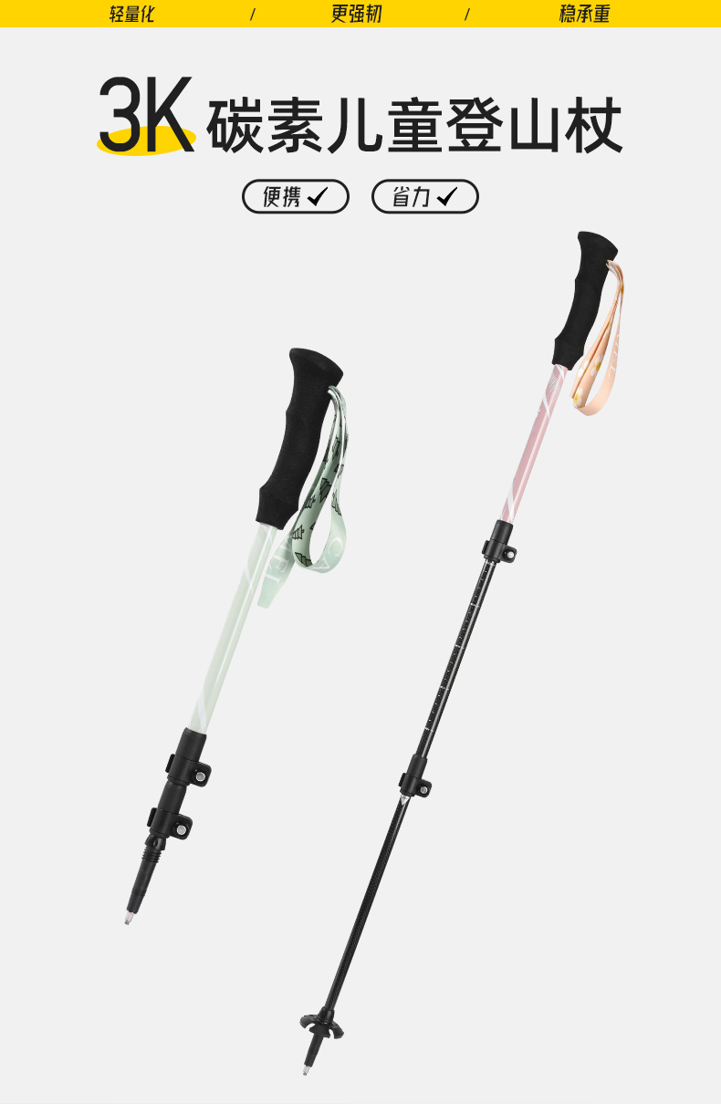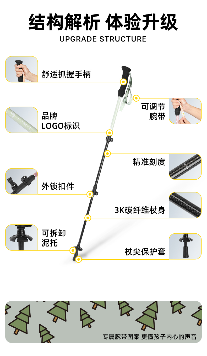 骆驼儿童登山杖碳纤维碳素伸缩防滑拐棍专业户外爬山仗轻便手杖 174BABP669_174BABP669A