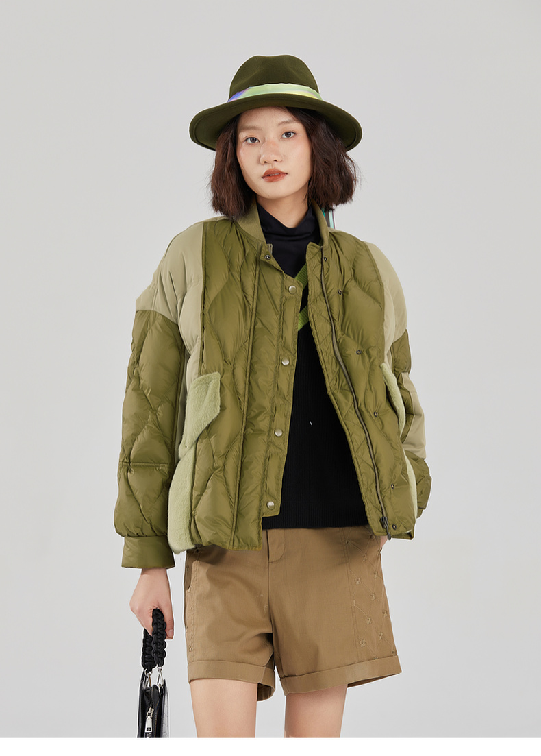 谜底短款羽绒服女2023冬季新款时尚毛毛拼接感鸭绒外套239MY7404