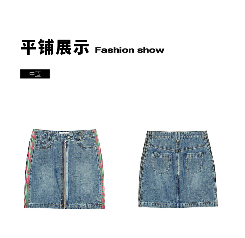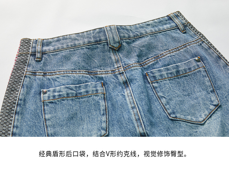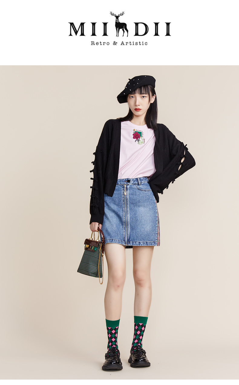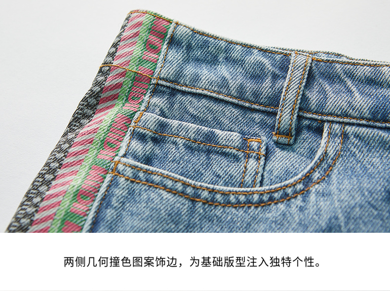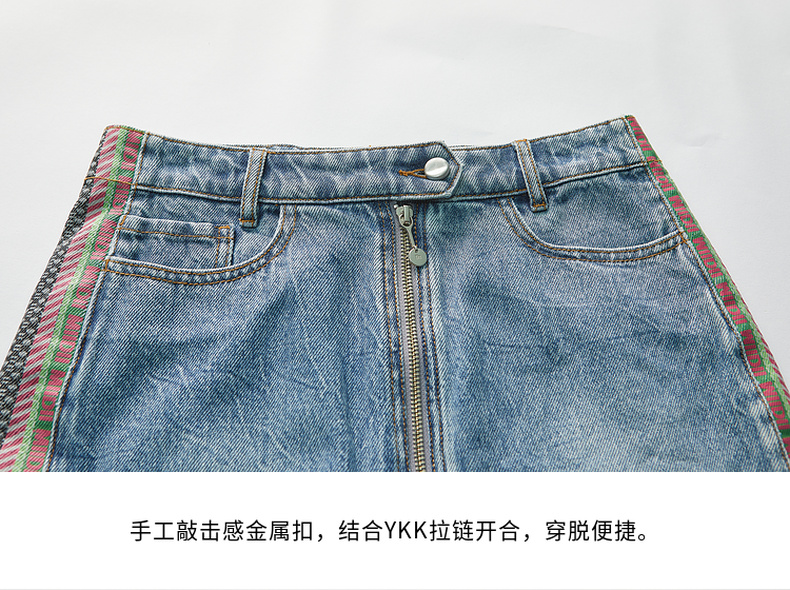 MIIDII谜底2022春新款短裙减龄拼接彩色织带棉牛仔半裙221MB0018