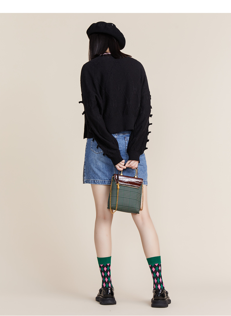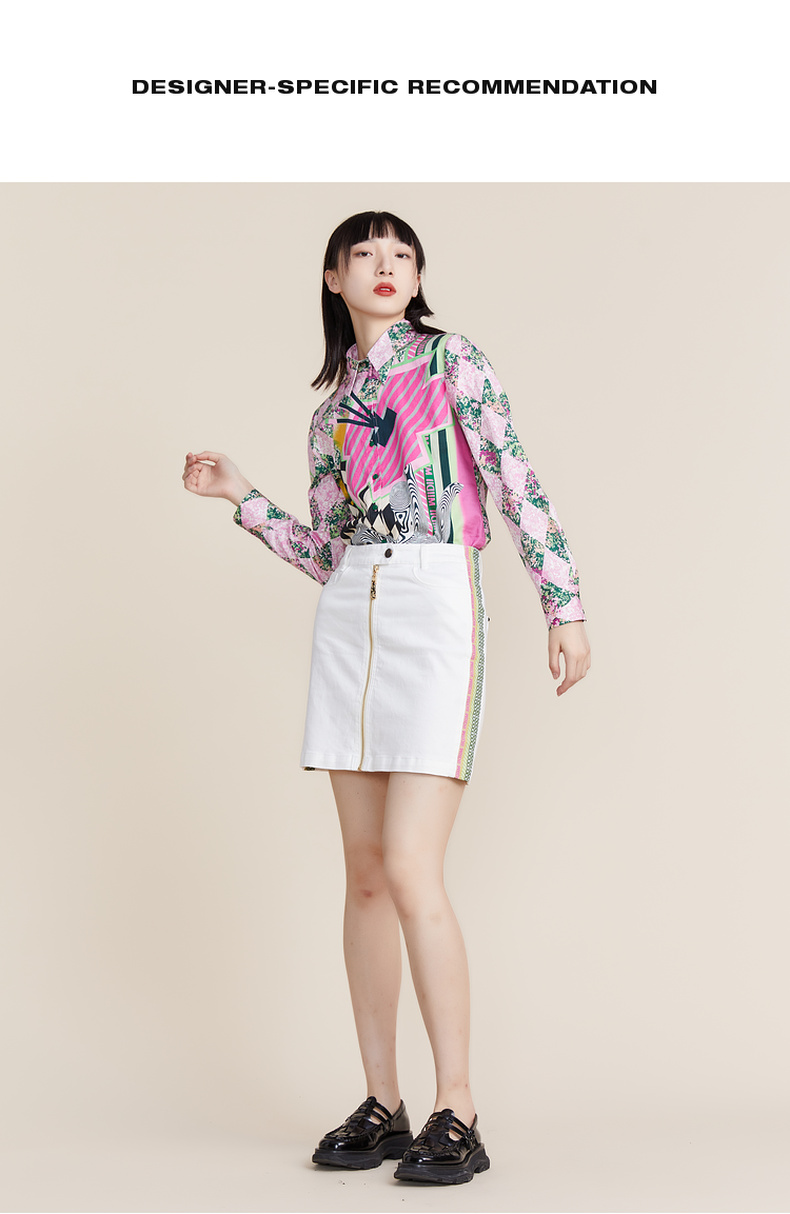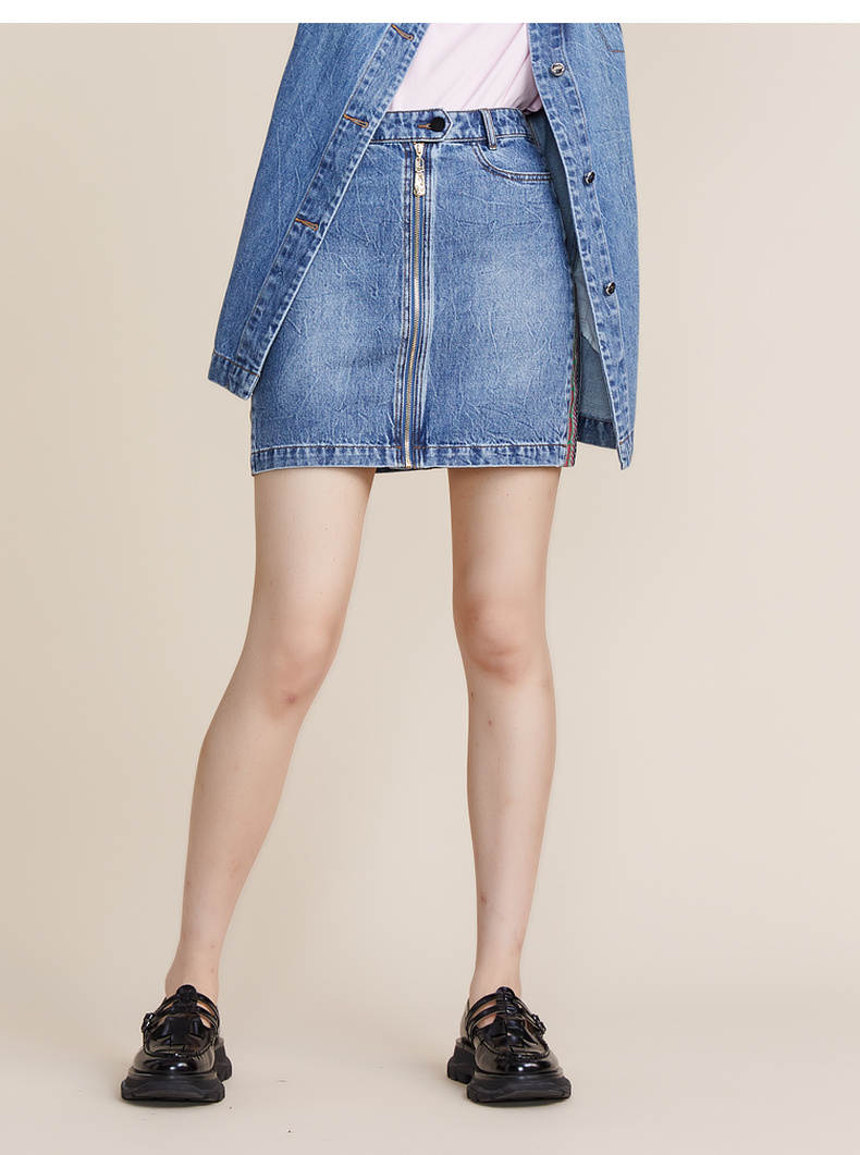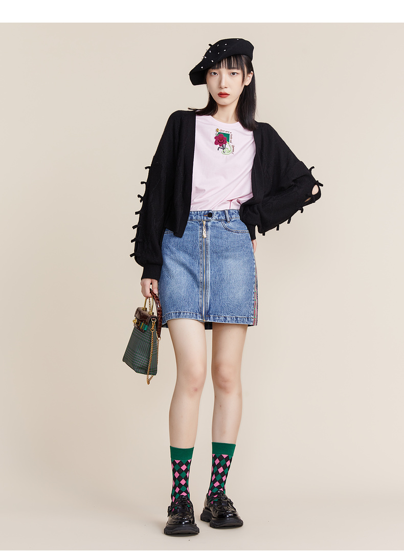 MIIDII谜底2022春新款短裙减龄拼接彩色织带棉牛仔半裙221MB0018