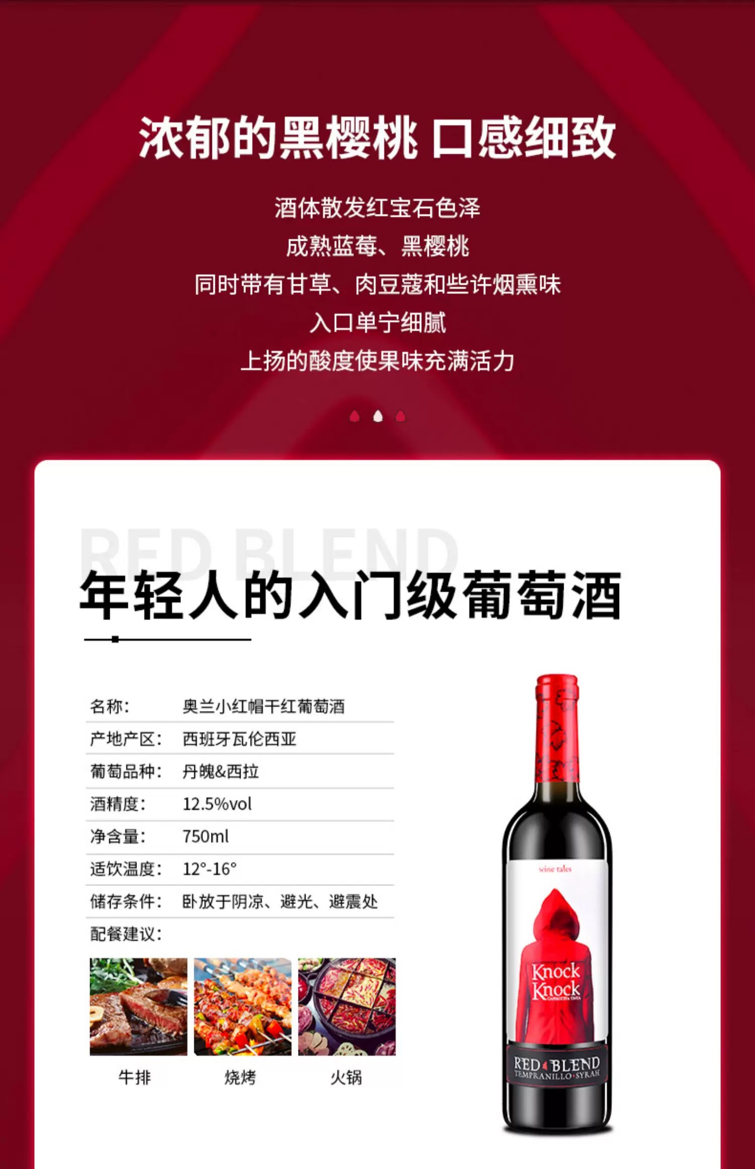 【直选好酒】奥兰小红帽干红葡萄酒750ml单支