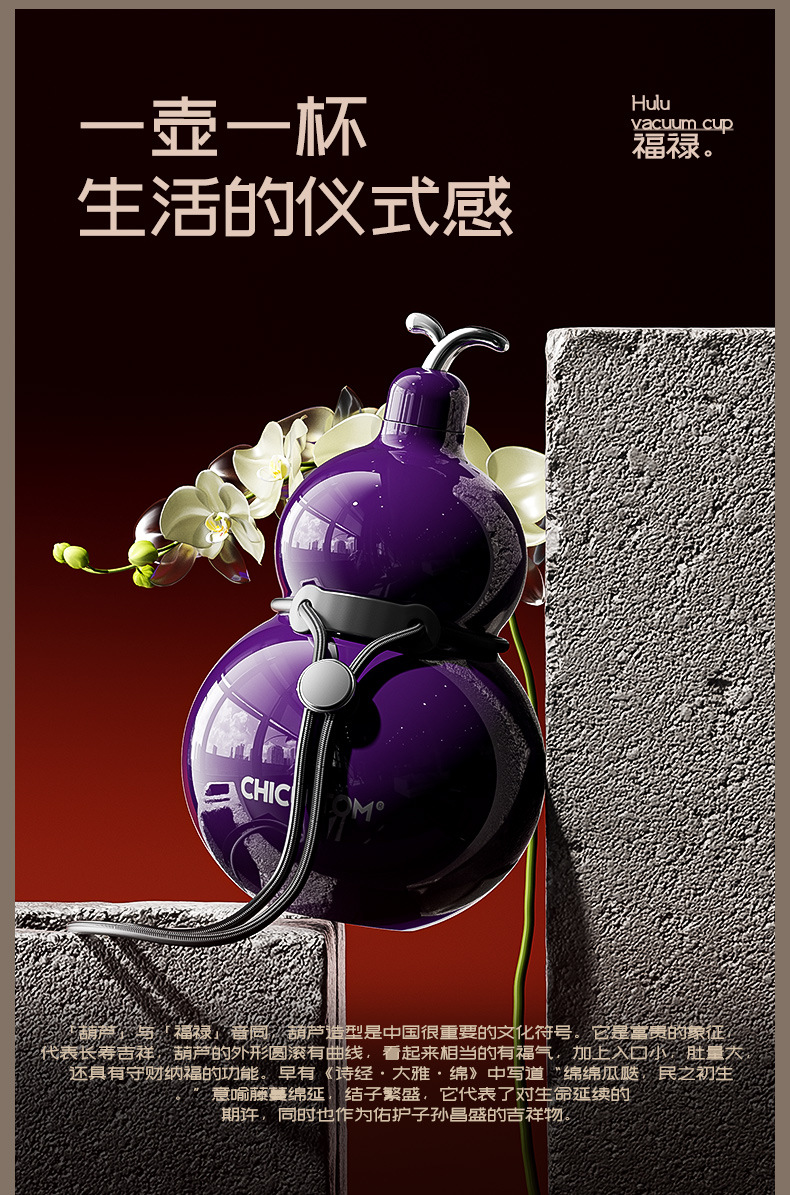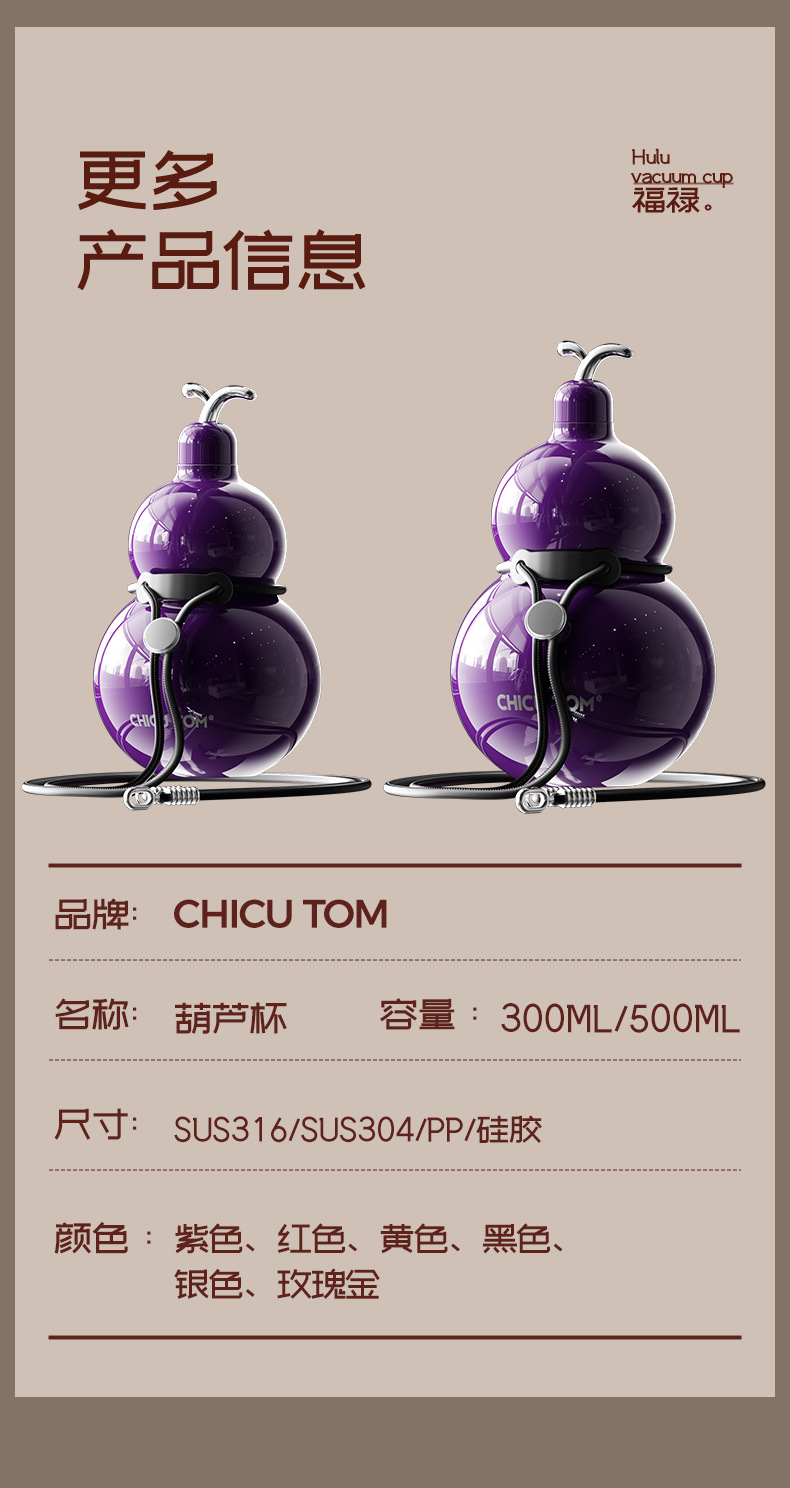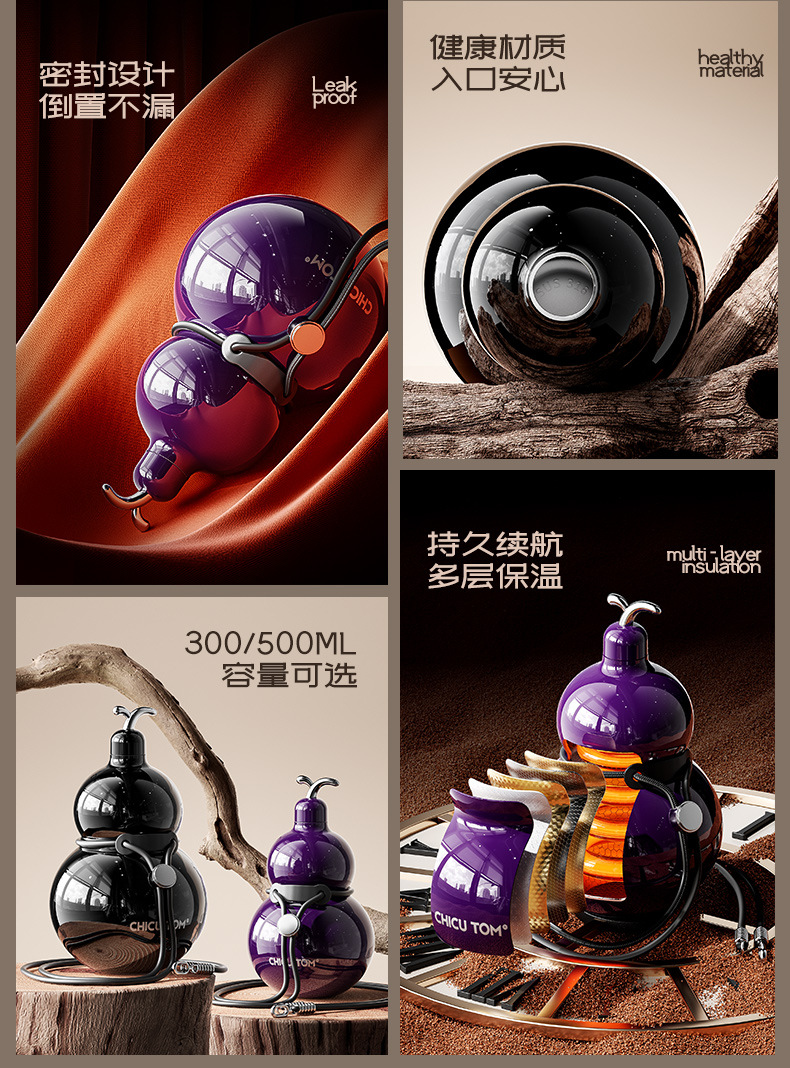 316不锈钢内胆保温杯奇古堂高颜值大容量葫芦水杯户外成人杯子个性保温杯