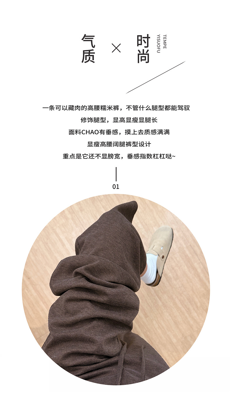 灰色糯米裤子女秋季小个子宽松垂坠感软糯胖mm大码休闲直筒阔腿裤 商品图1