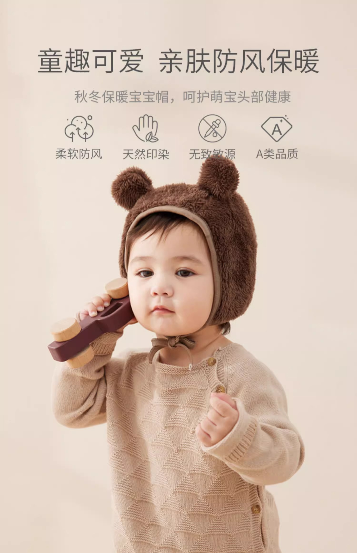 科巢婴儿帽子秋冬护耳帽男女宝宝小月龄婴幼儿新生胎帽春秋款防风纯棉