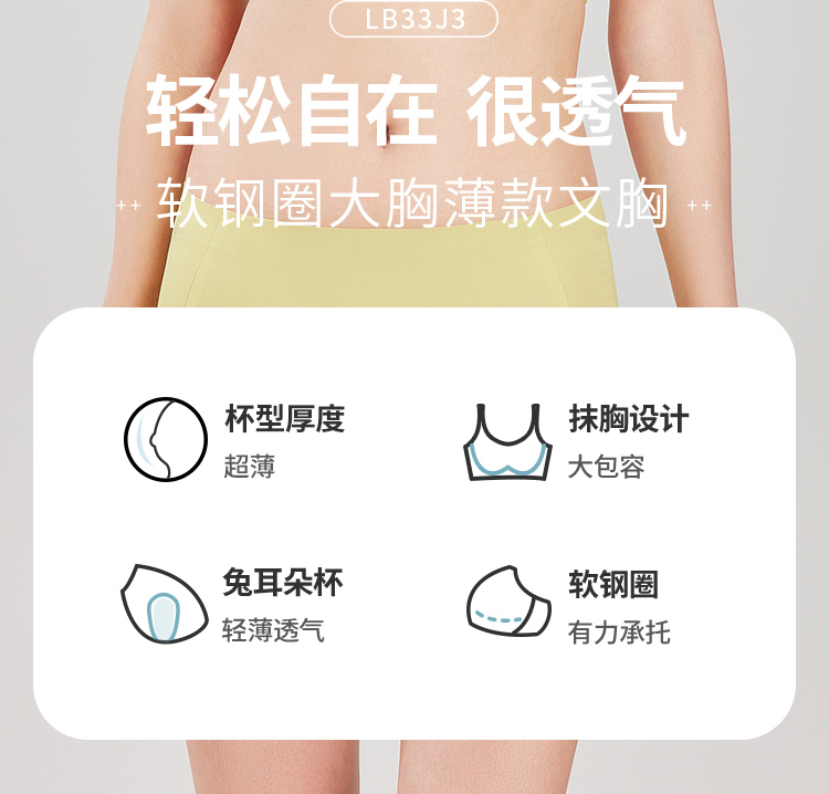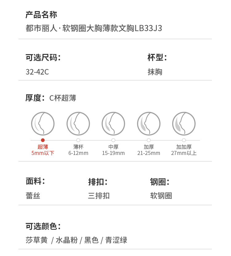都市丽人完美包容常规内衣C杯超薄抹胸蕾丝文胸三排软钢圈LB33J3
