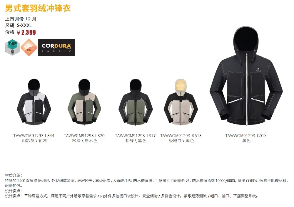 探路者男式套羽绒冲锋衣TAWWCM91293