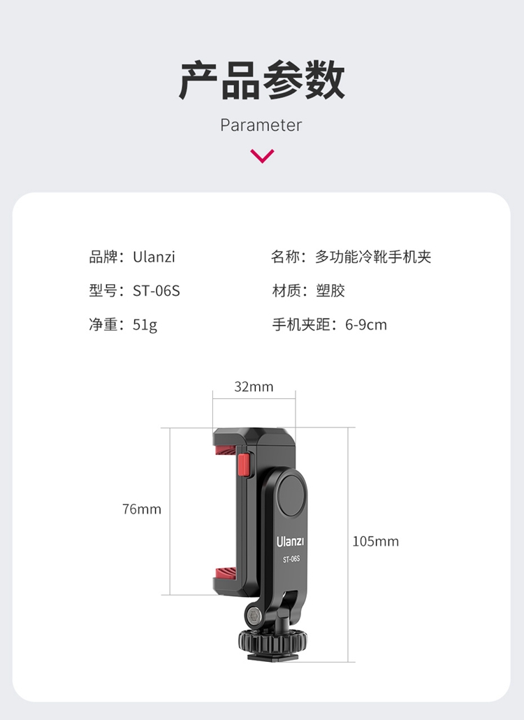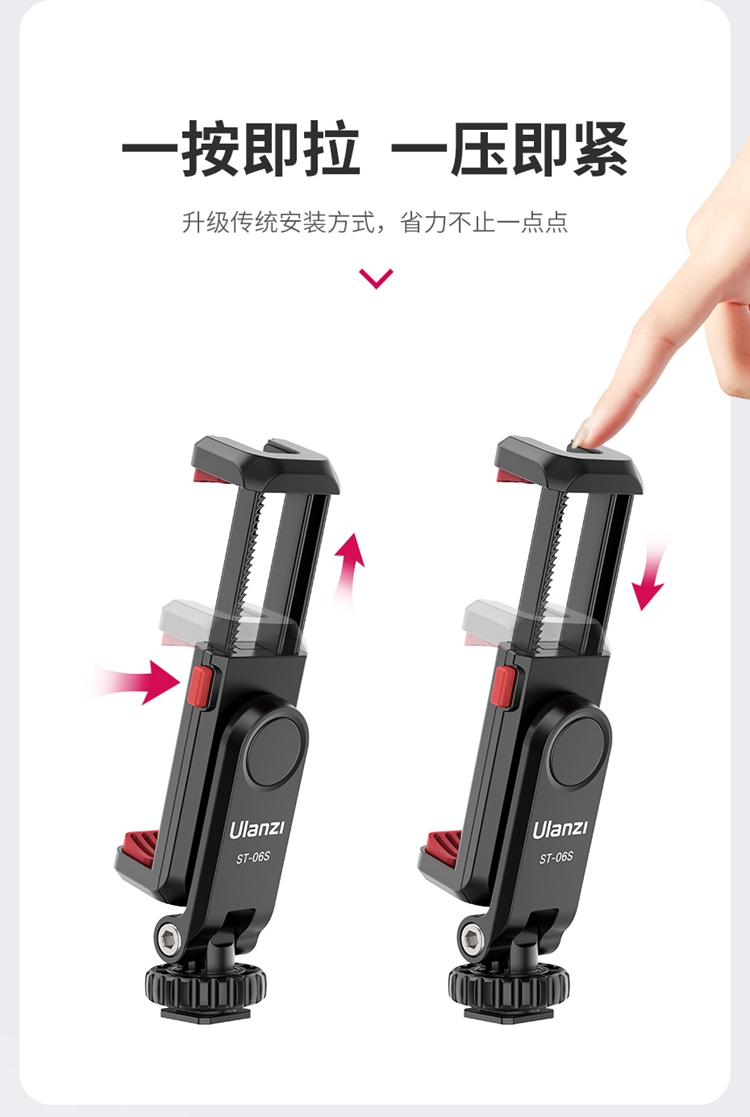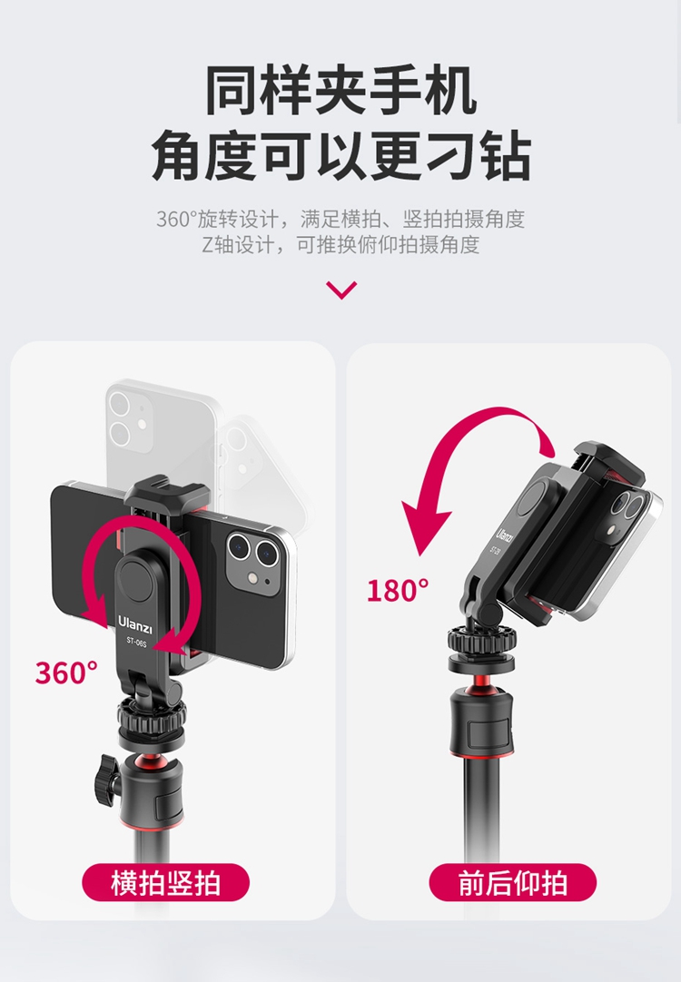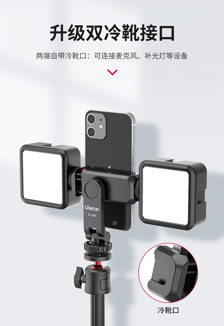 Ulanzi优篮子 ST-06S双冷靴手机夹360°旋转横竖拍俯仰拍vlog支架便携监视器热靴固定夹