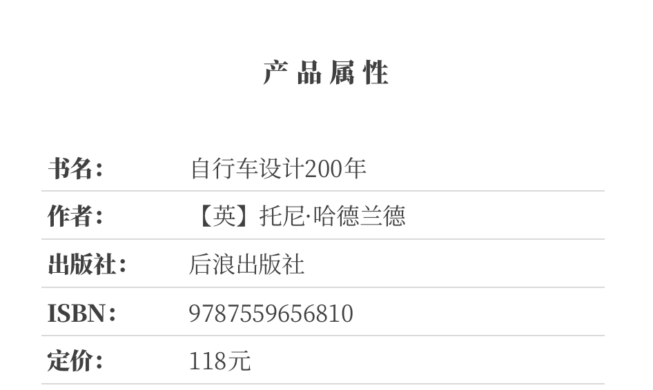 全书配以300多张历史珍贵照片和设计图,这本权威的自行车历史书将成为自行车未来持续演进的新起点。