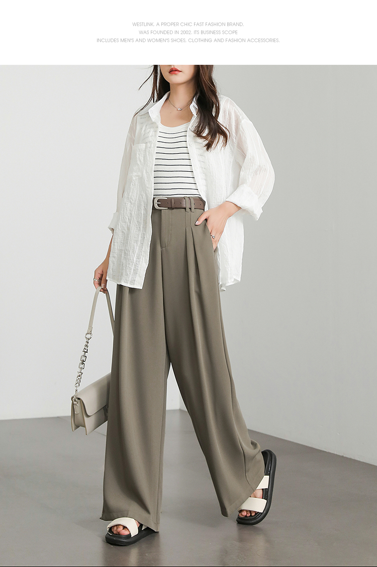 西遇垂坠感阔腿裤女夏季新款西装裤宽松慵懒风高腰休闲裤D0050521