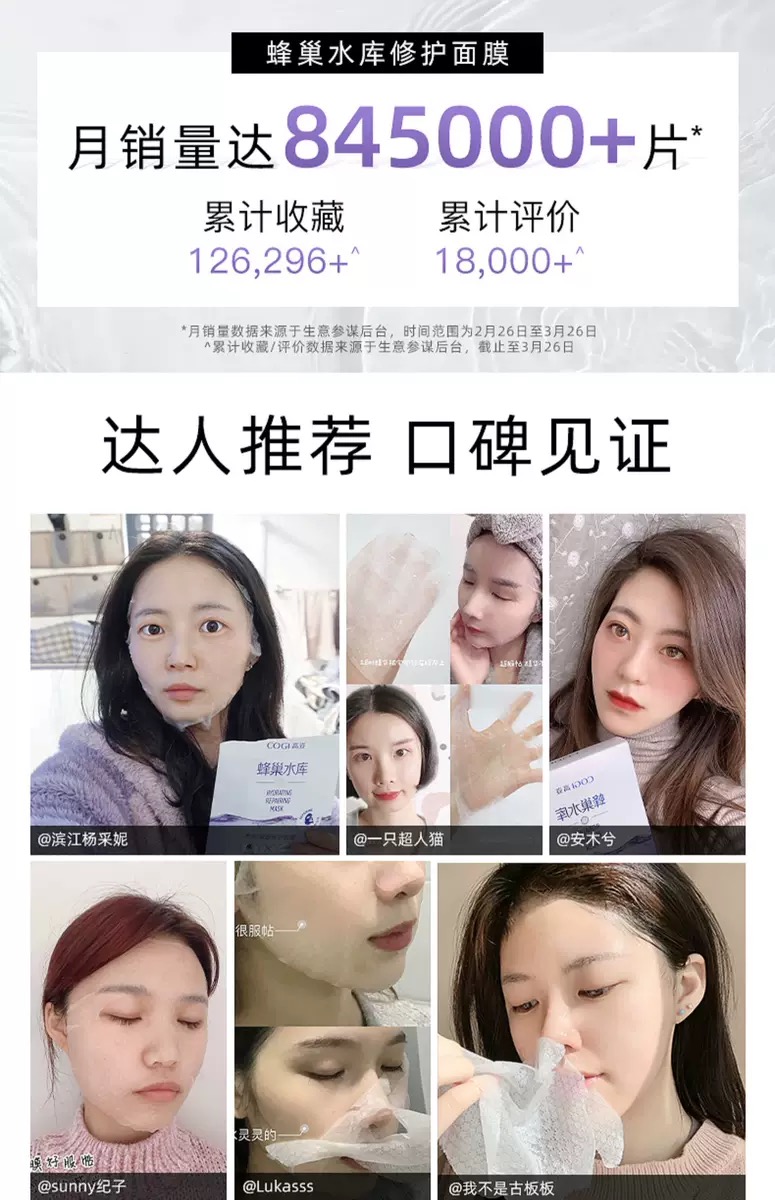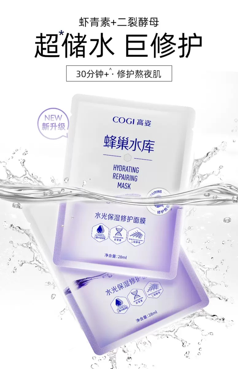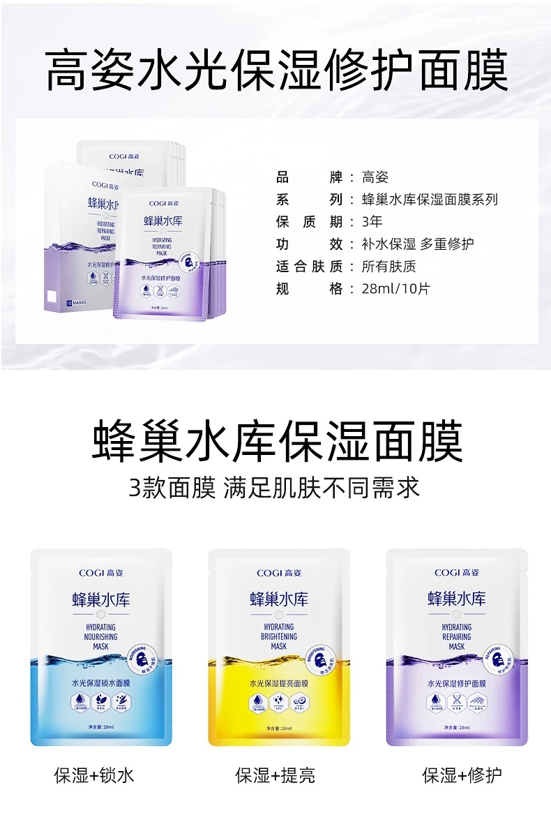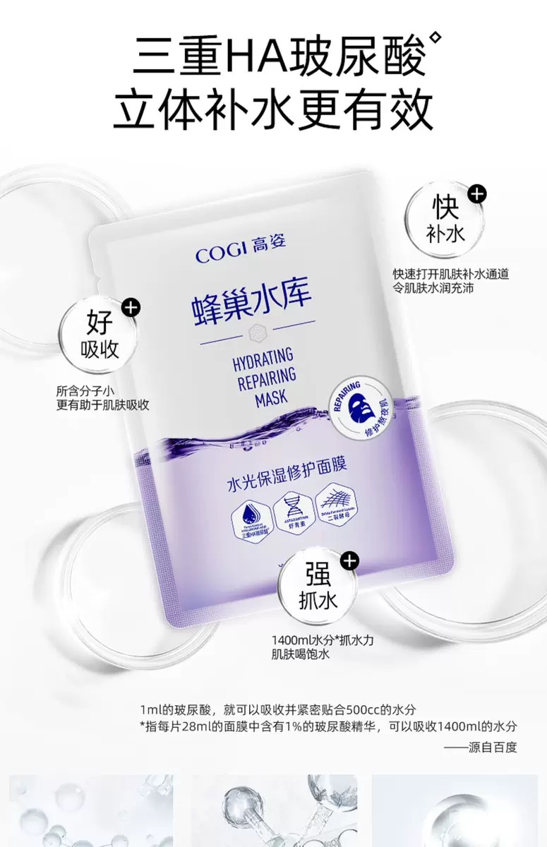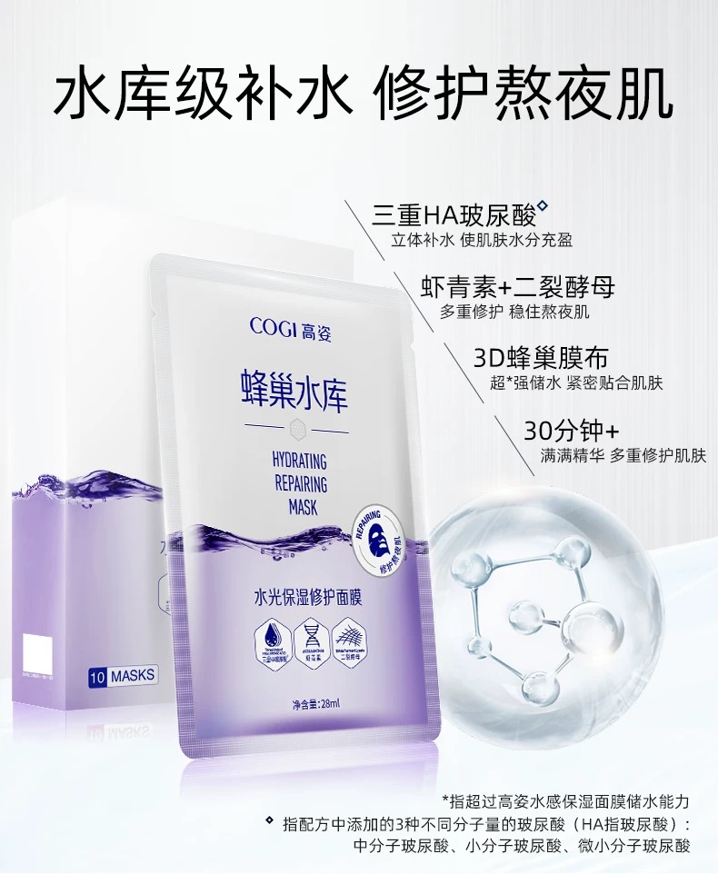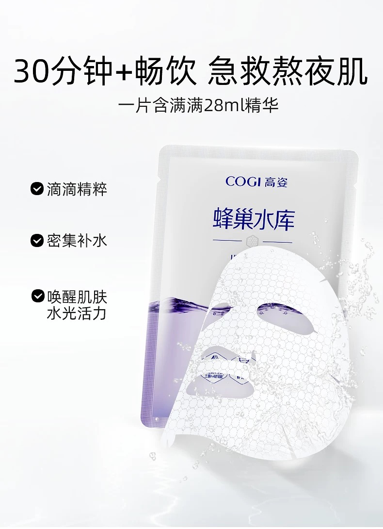 高姿面膜蜂巢水库补水保湿提亮肤色玻尿修护熬夜敏感肌肤