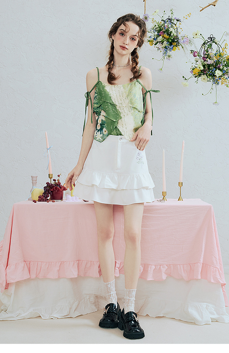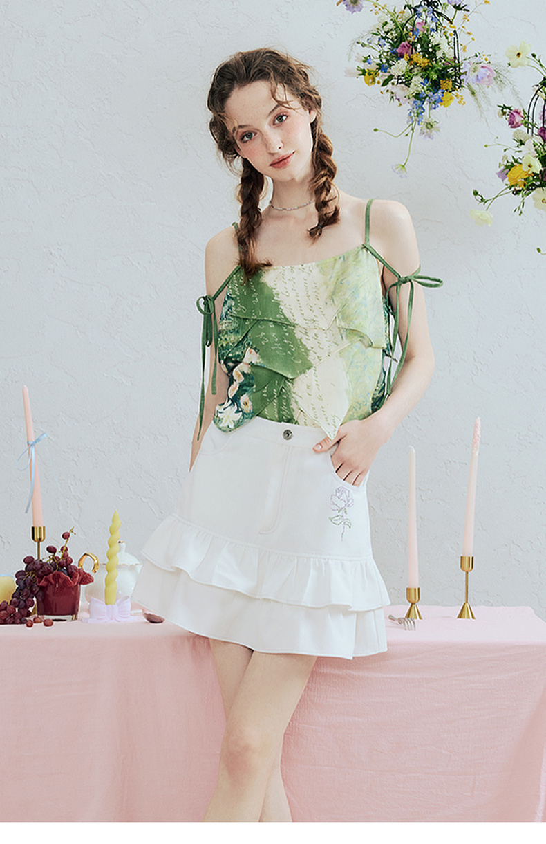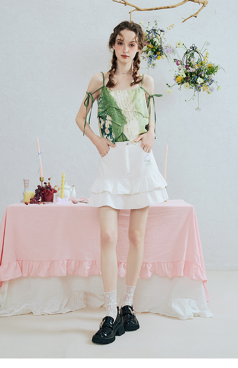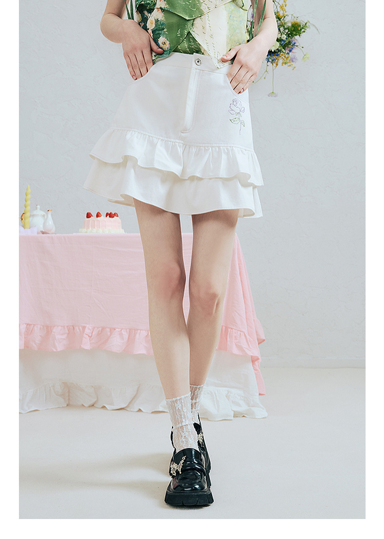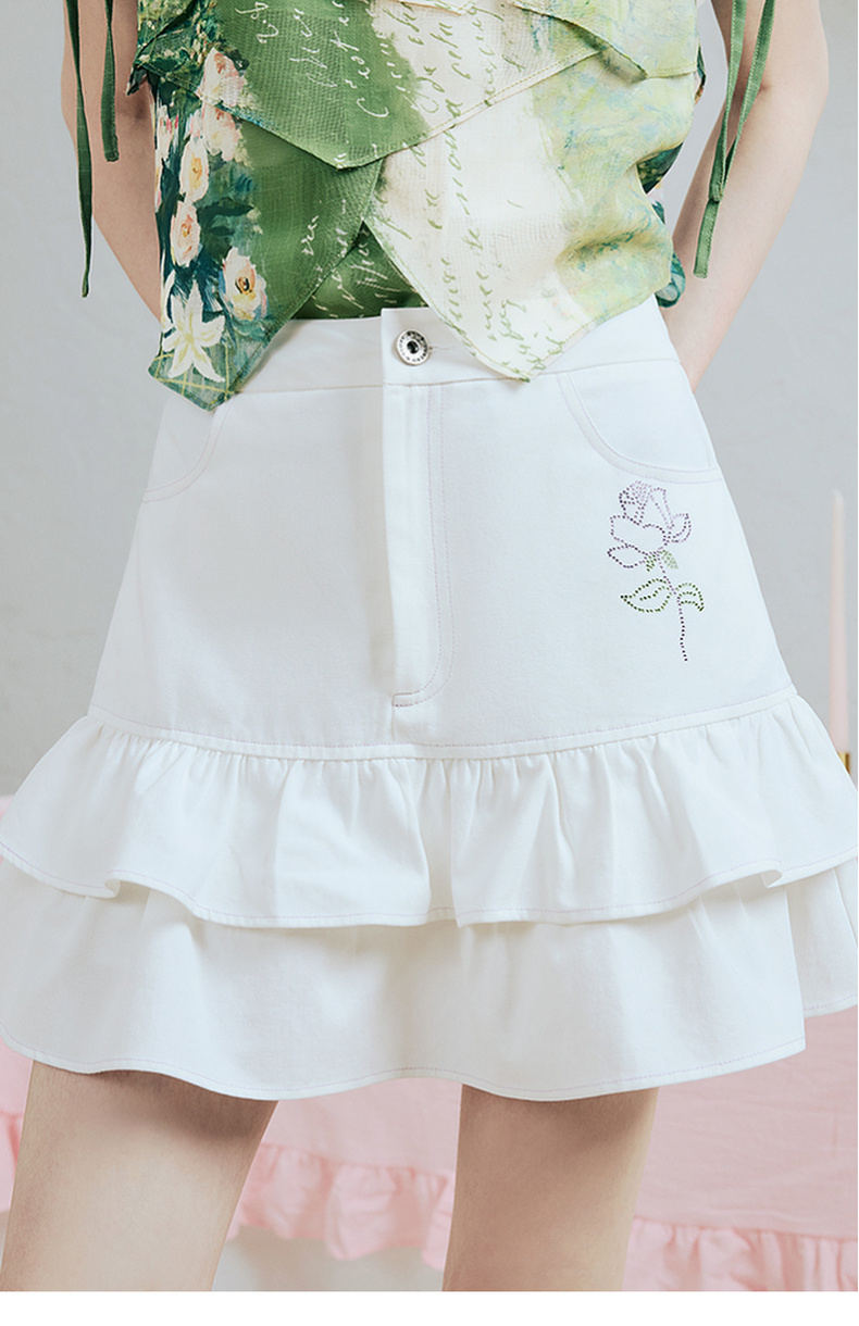 两三事雪吻椰蓉2025夏季新款甜美双层荷叶边裙摆烫钻玫瑰花半身裙