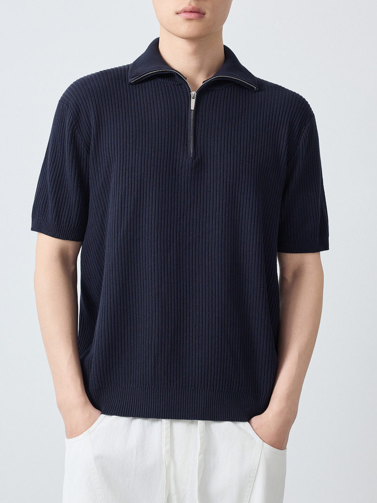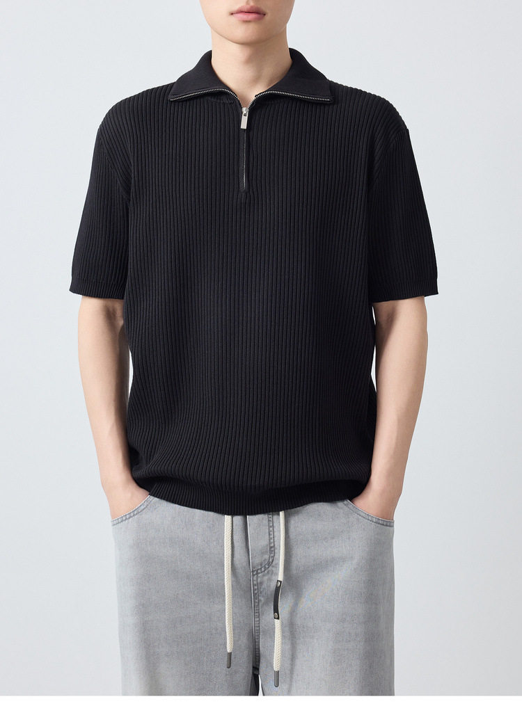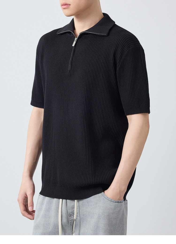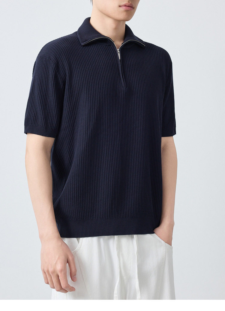 墨麦客高智通勤针织短袖polo衫男2026夏款坑条肌理男士T恤75203.