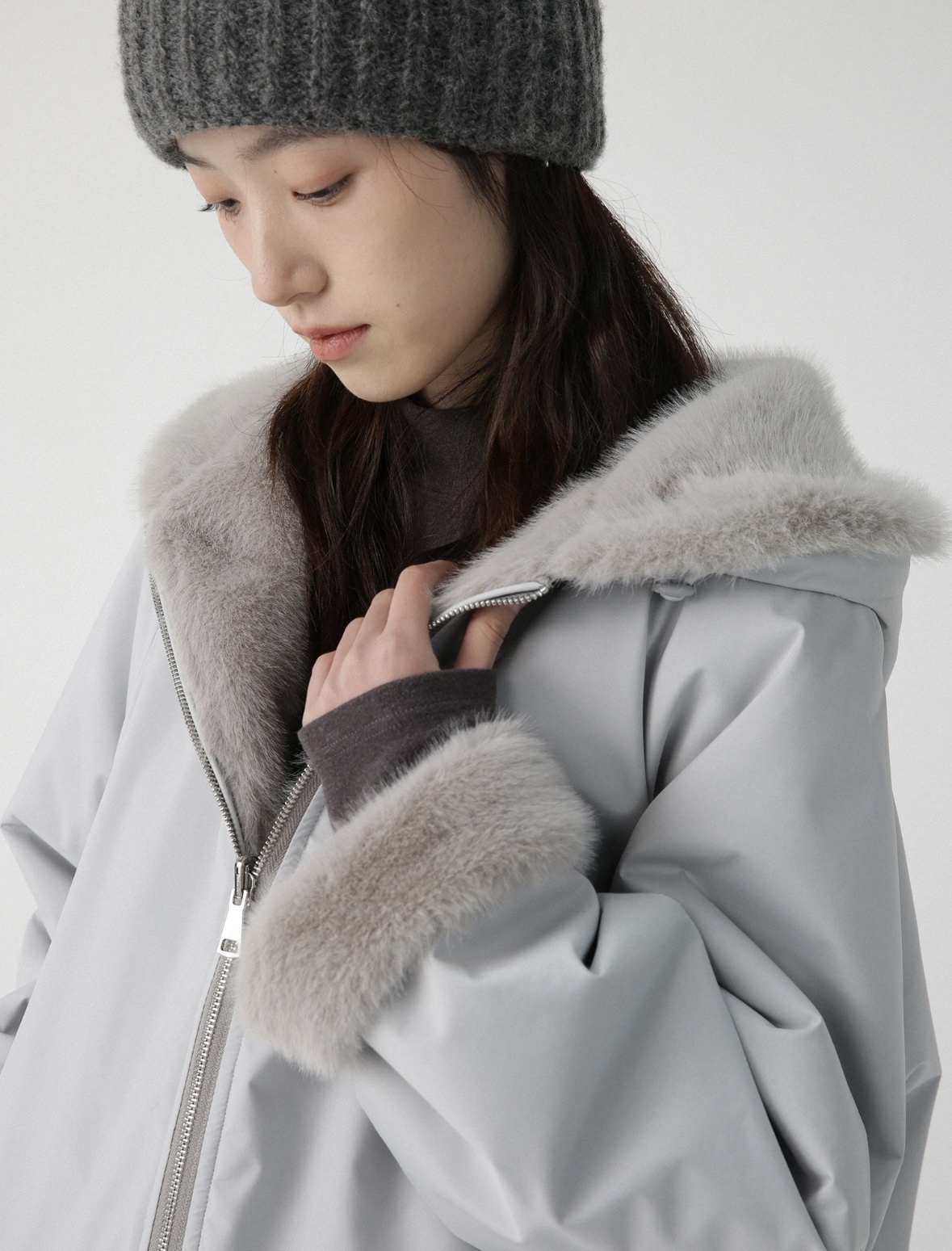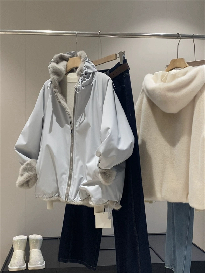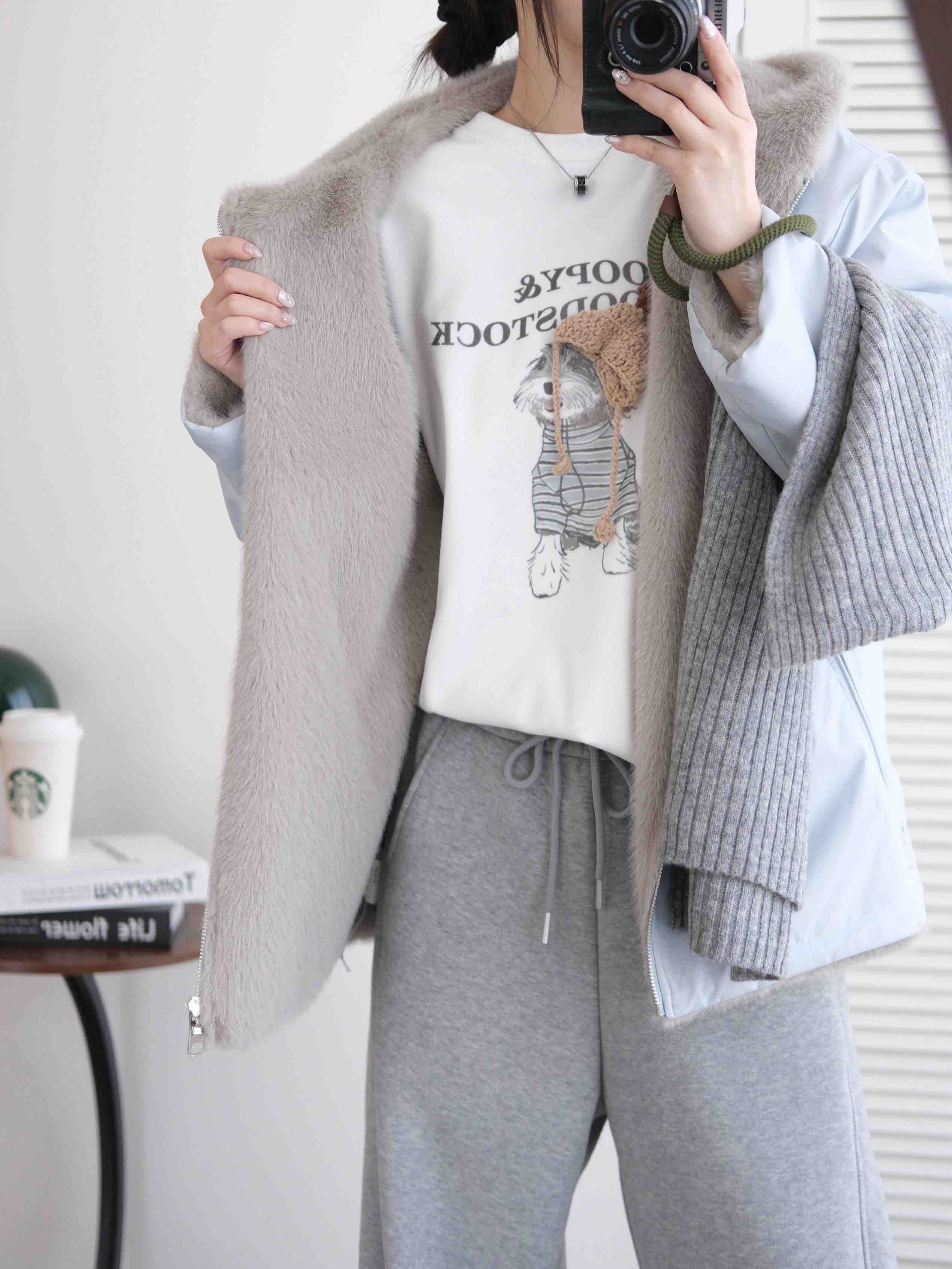 仿貂绒连帽一体保暖外套,外层三防面料,内里水貂绒暖糯亲肤(3-7天发货)【G】