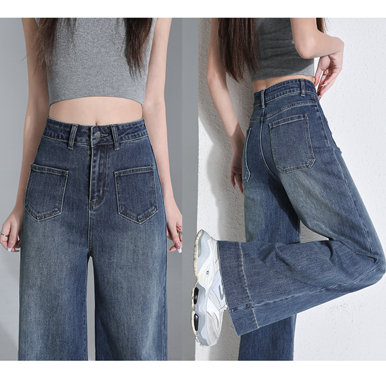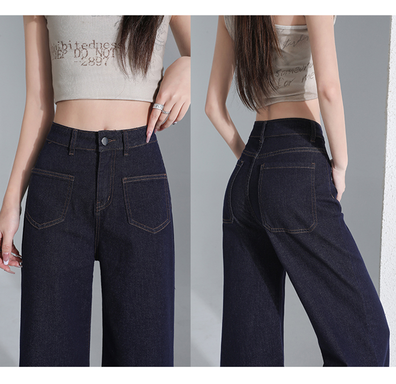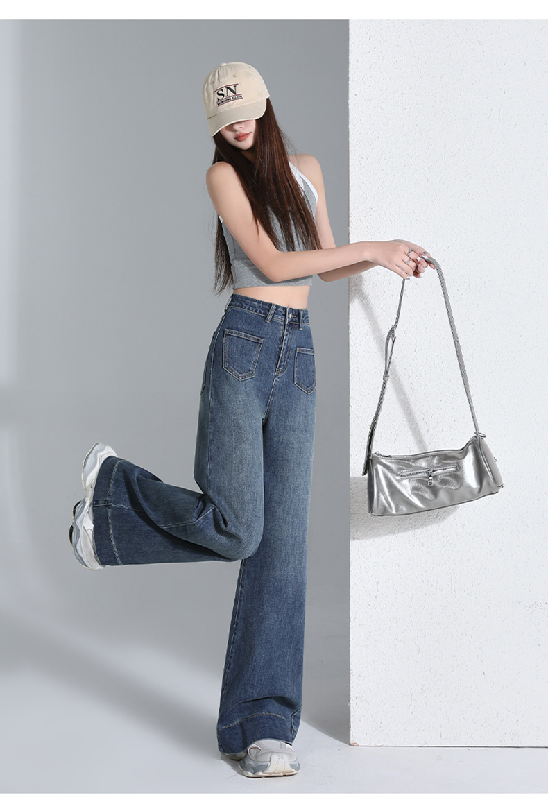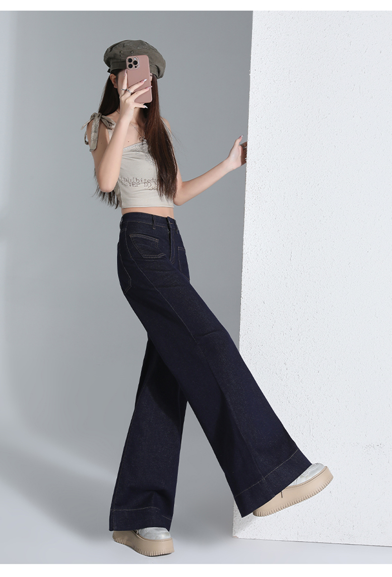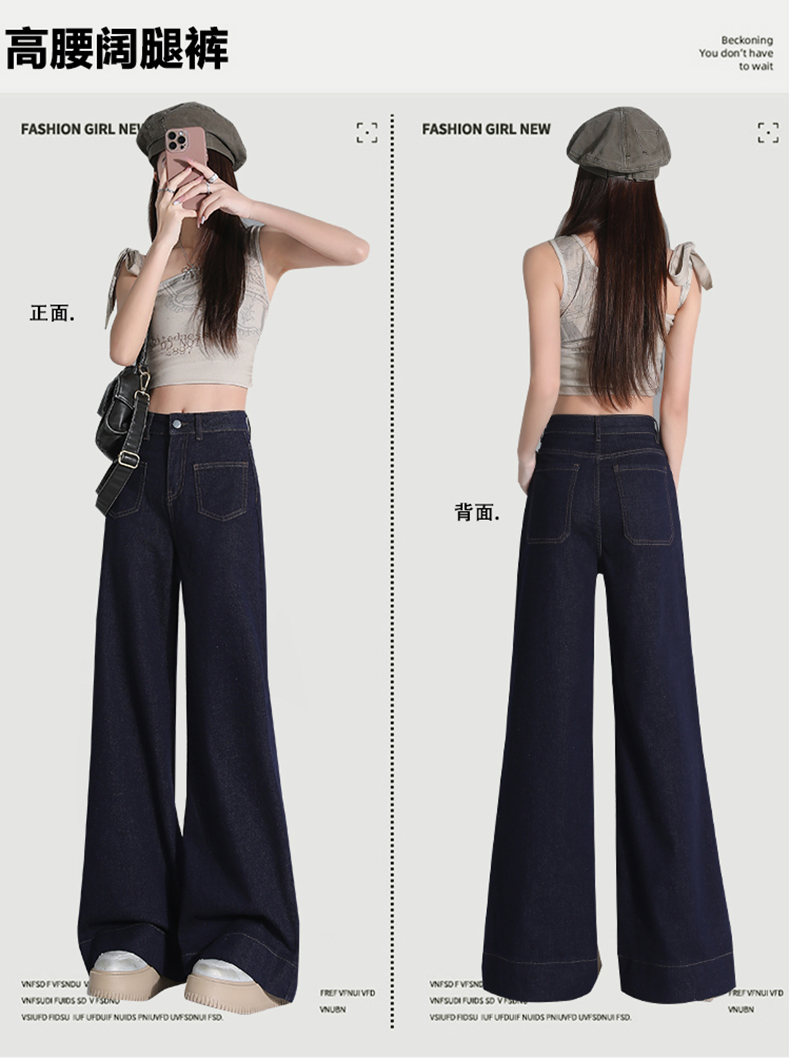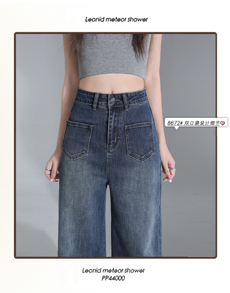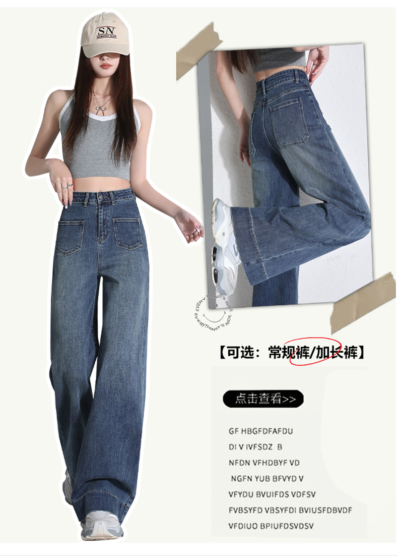 罗蒙四季款女士高腰直筒显瘦牛仔裤时尚百搭阔腿裤休闲通勤女长裤