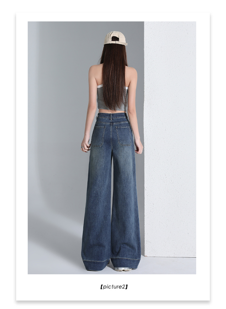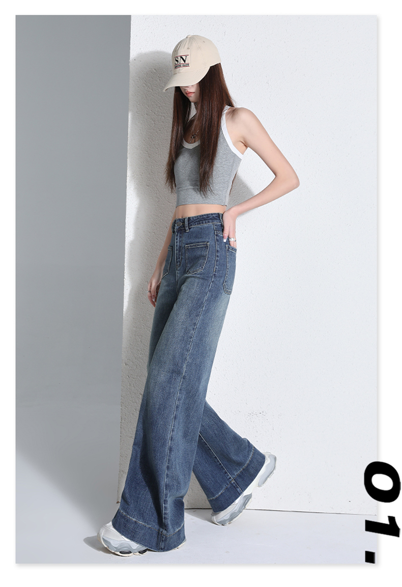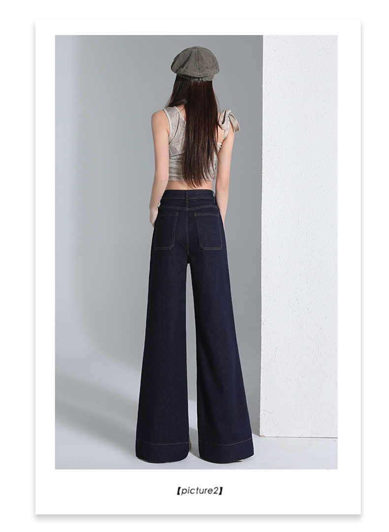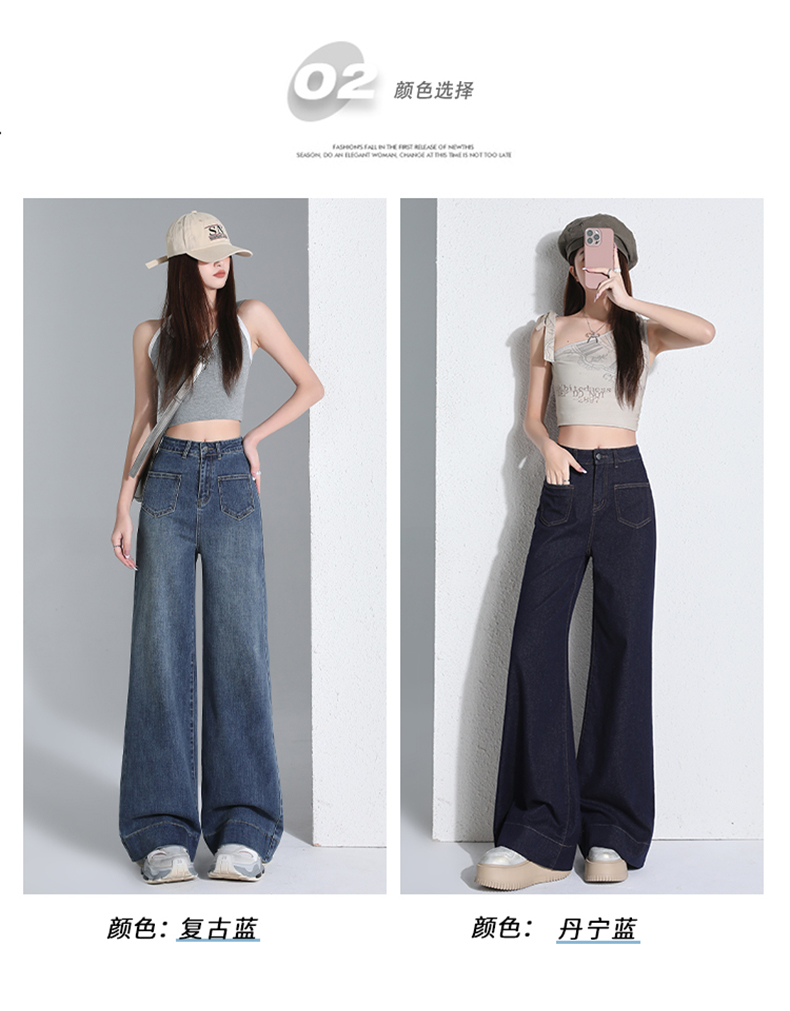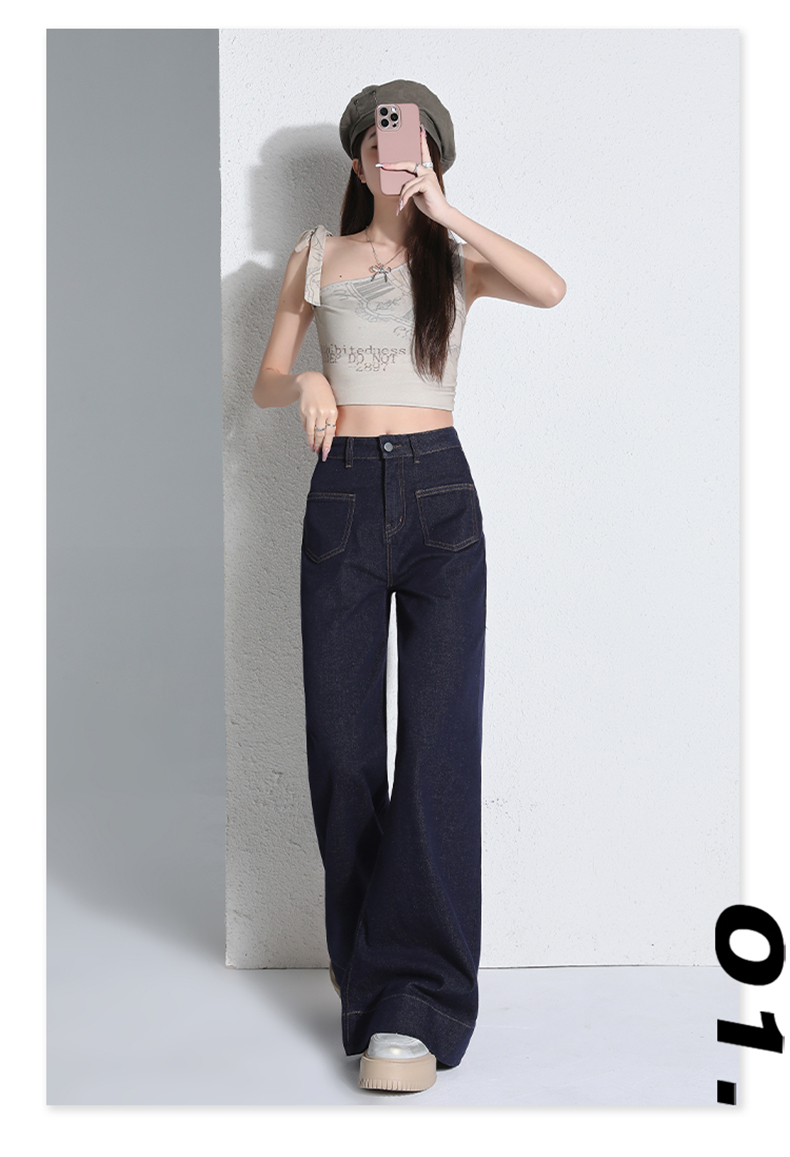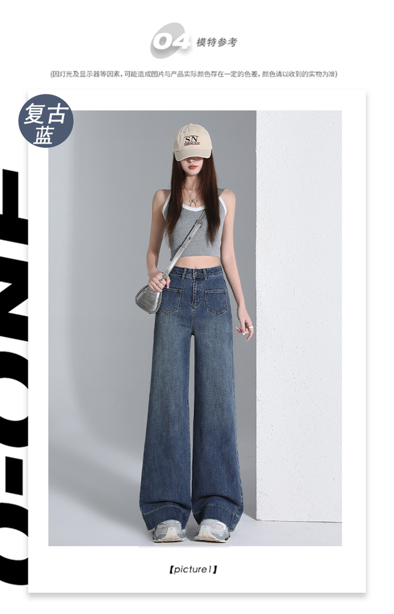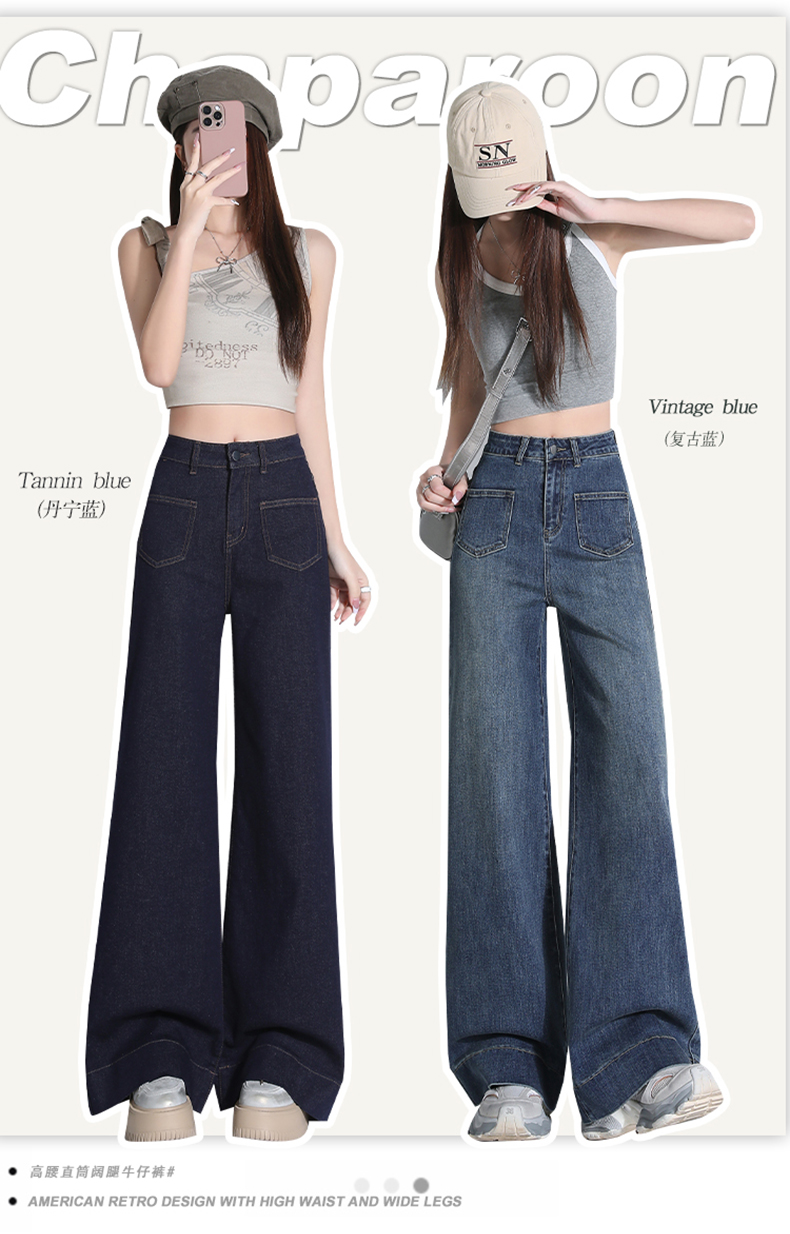 罗蒙四季款女士高腰直筒显瘦牛仔裤时尚百搭阔腿裤休闲通勤女长裤
