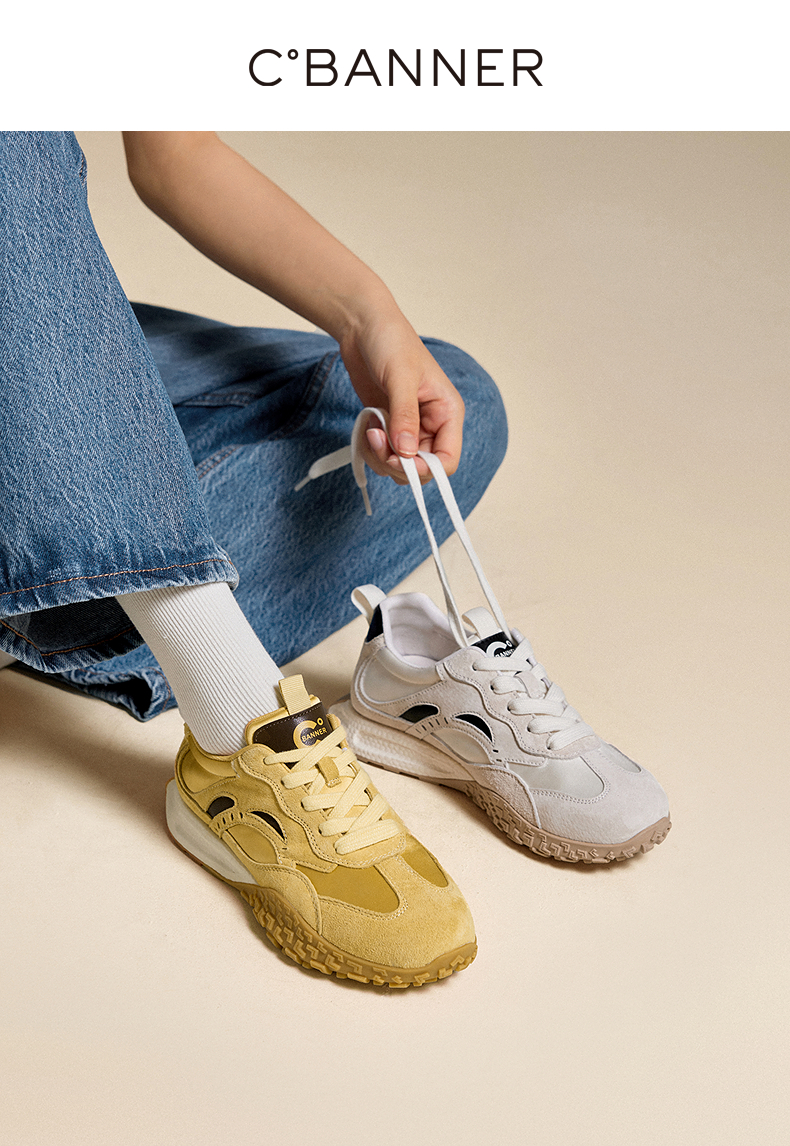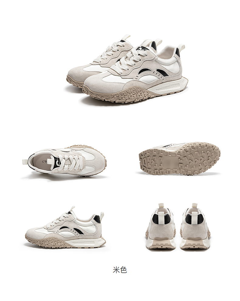千百度厚底时尚德训鞋女款韩系增高复古运动休闲鞋A25405101