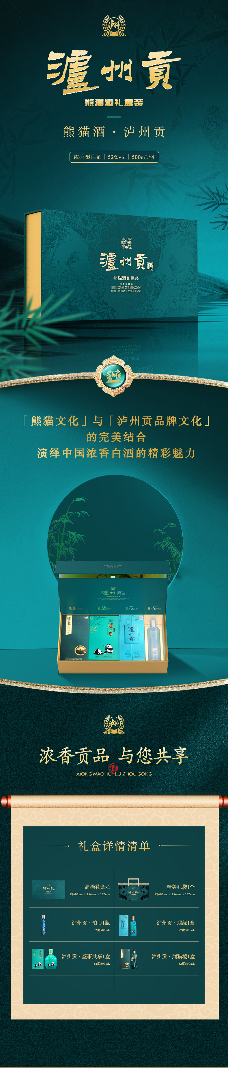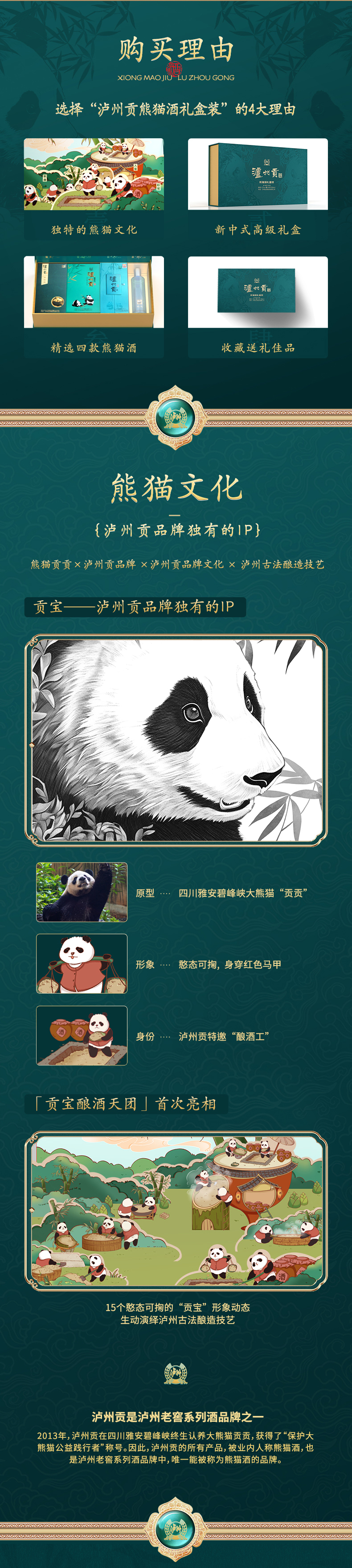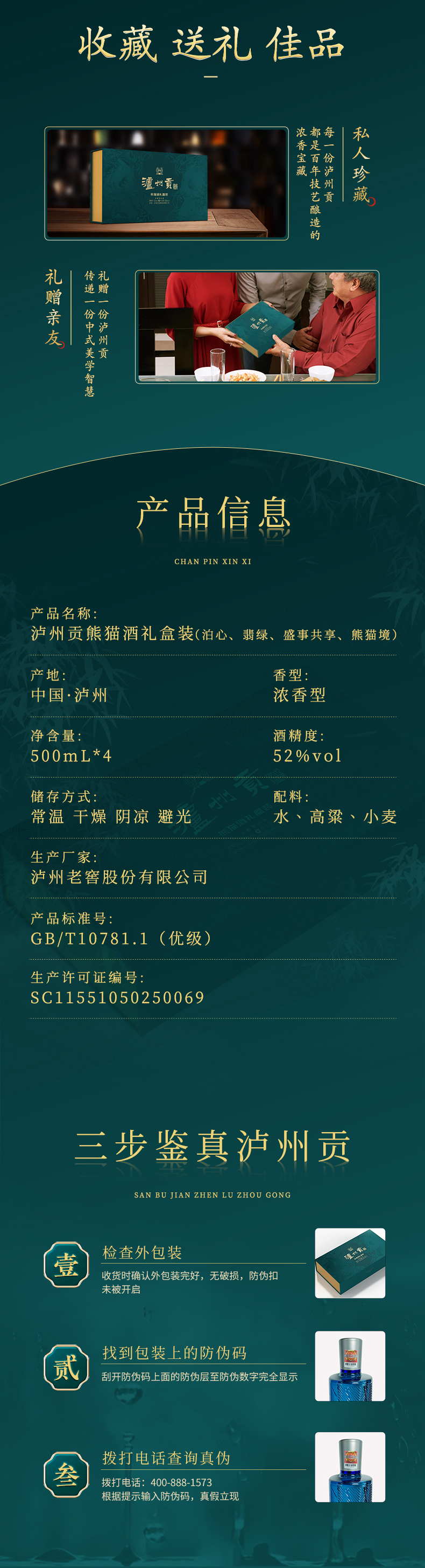 【酒厂直营】52度 泸州贡熊猫酒礼盒套装 500ml*4 泸州老窖官方旗舰店