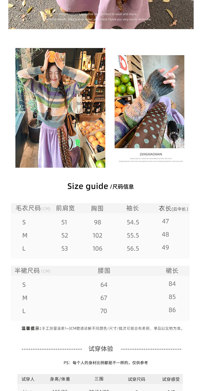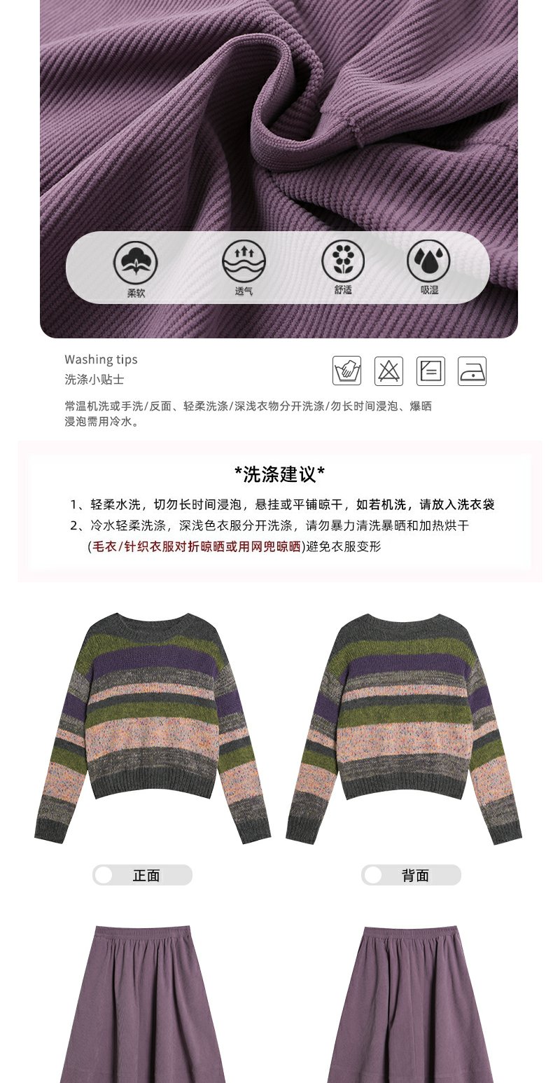 <曾小咸推荐>现货秒杀 !微信超特价! 彩色条纹针织衫 日常179.99 立减100 秒杀79.99!! 紫色半身裙 日常189.99 立减100 秒杀89.99!!