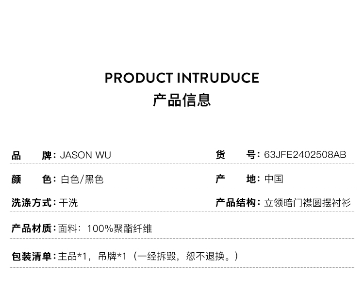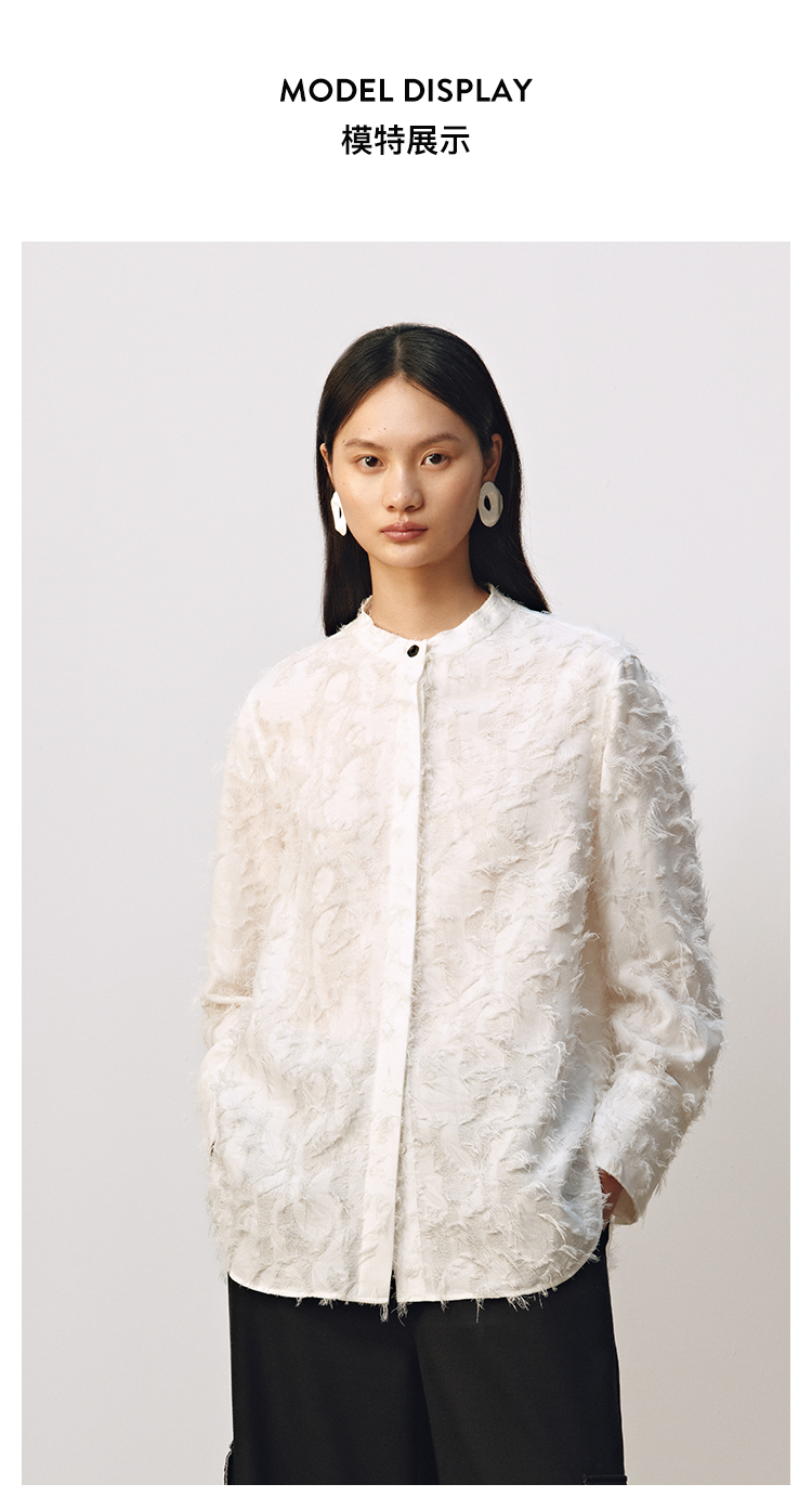 【JASON WU】秋冬新款简约通勤立领中式剪花立体流苏长袖衬衣白衬衫女