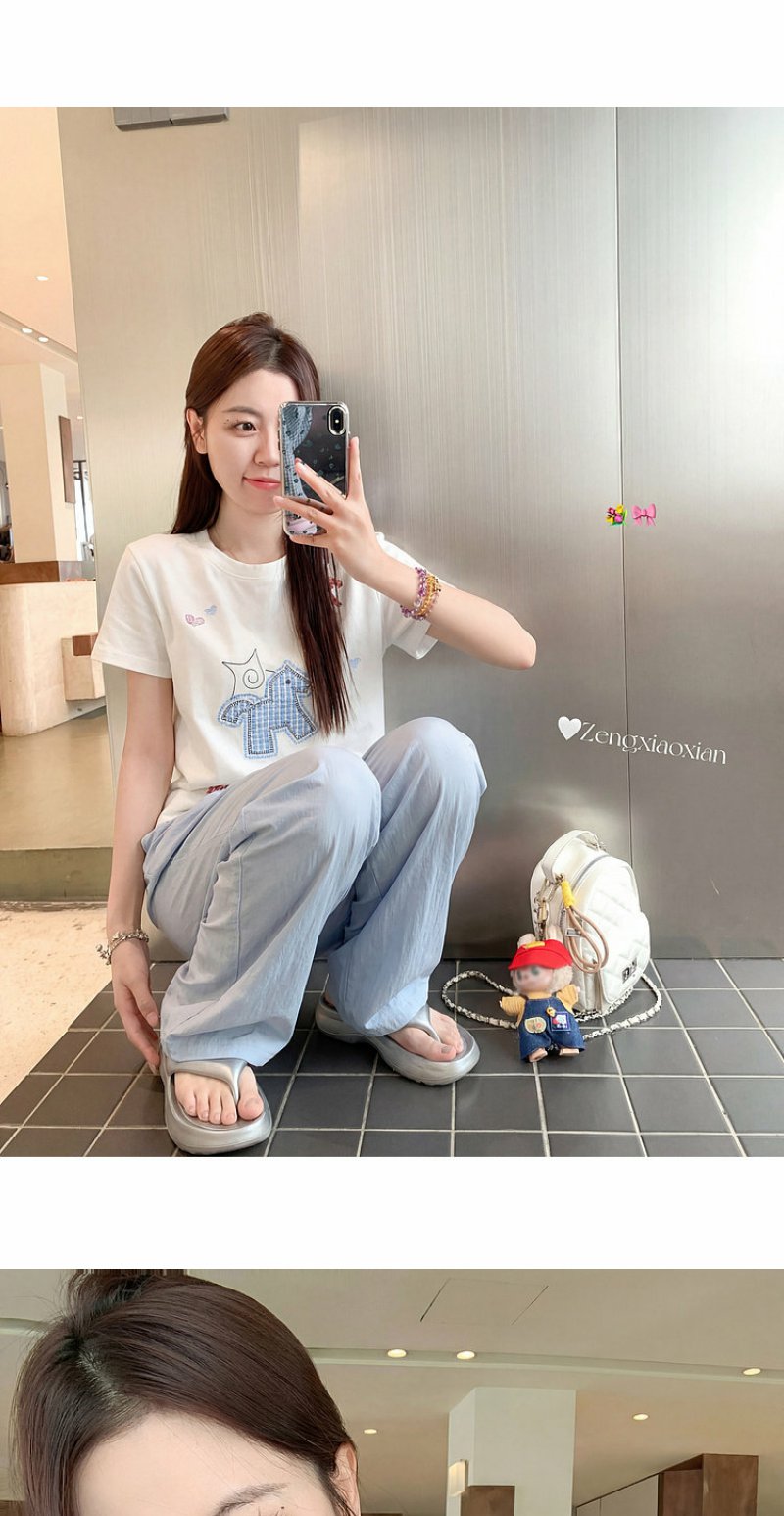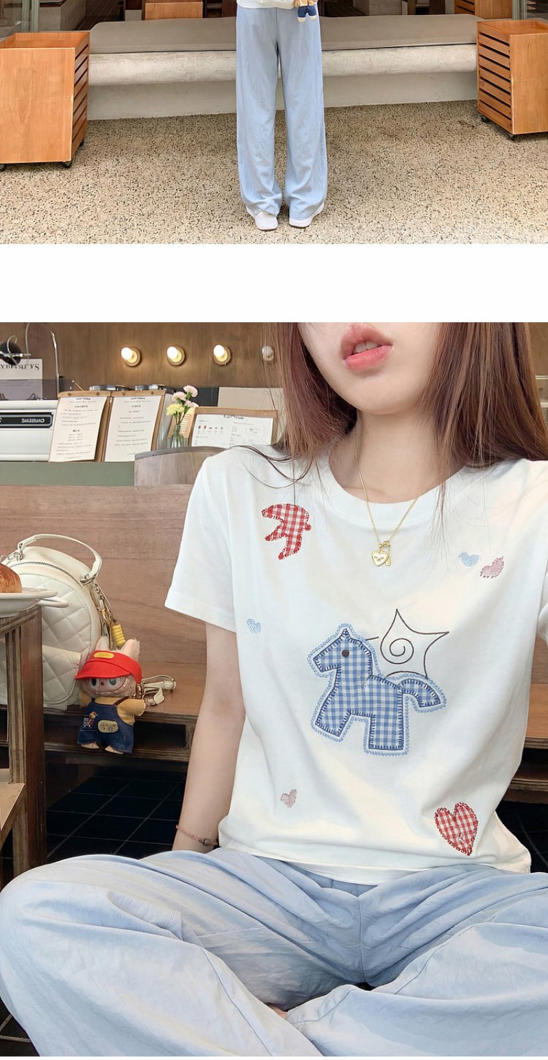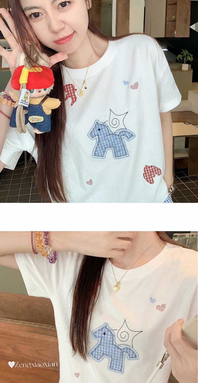 <曾小咸推荐>圆领卡通图案刺绣短袖T恤【预售7-15天发货】