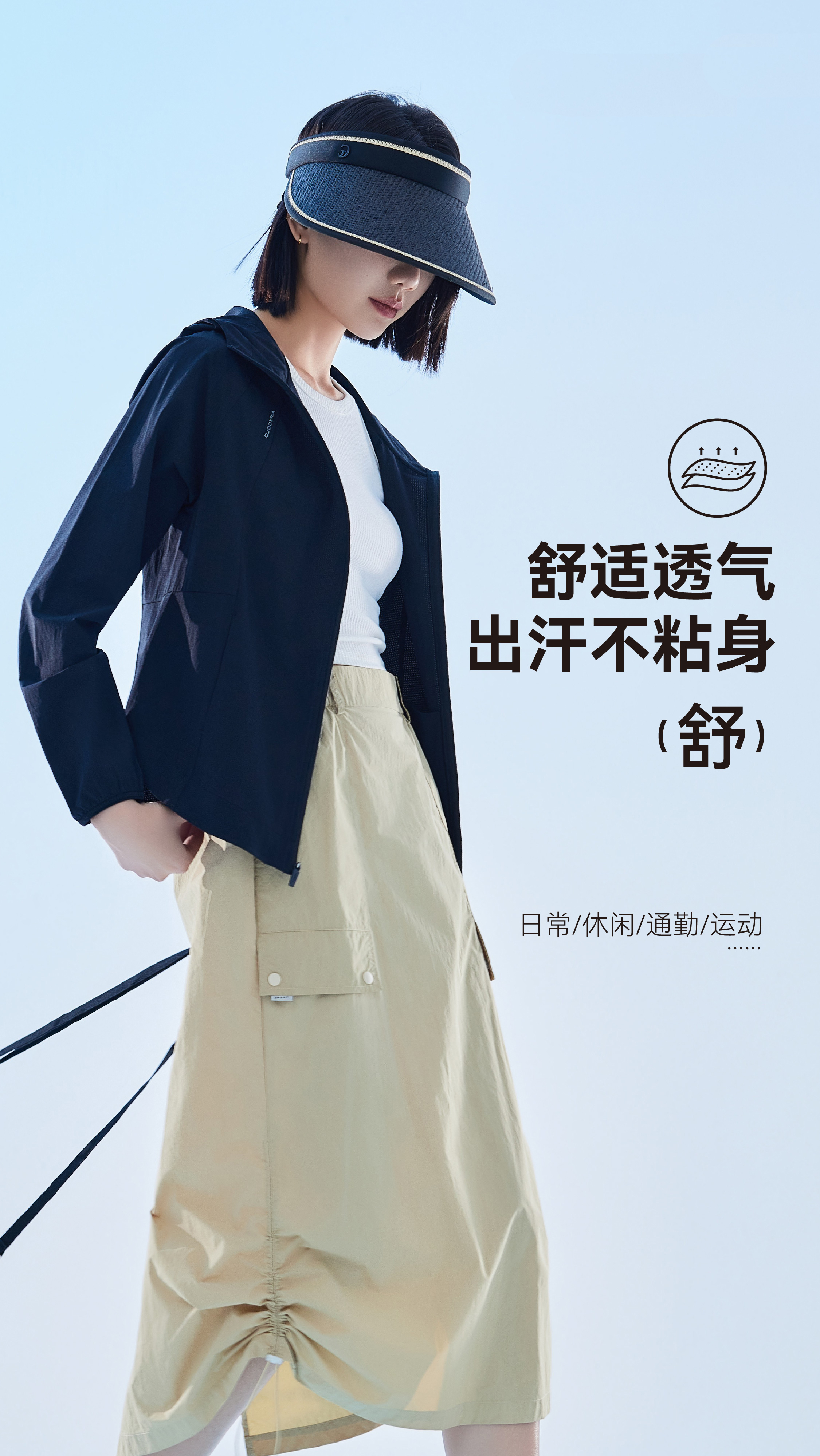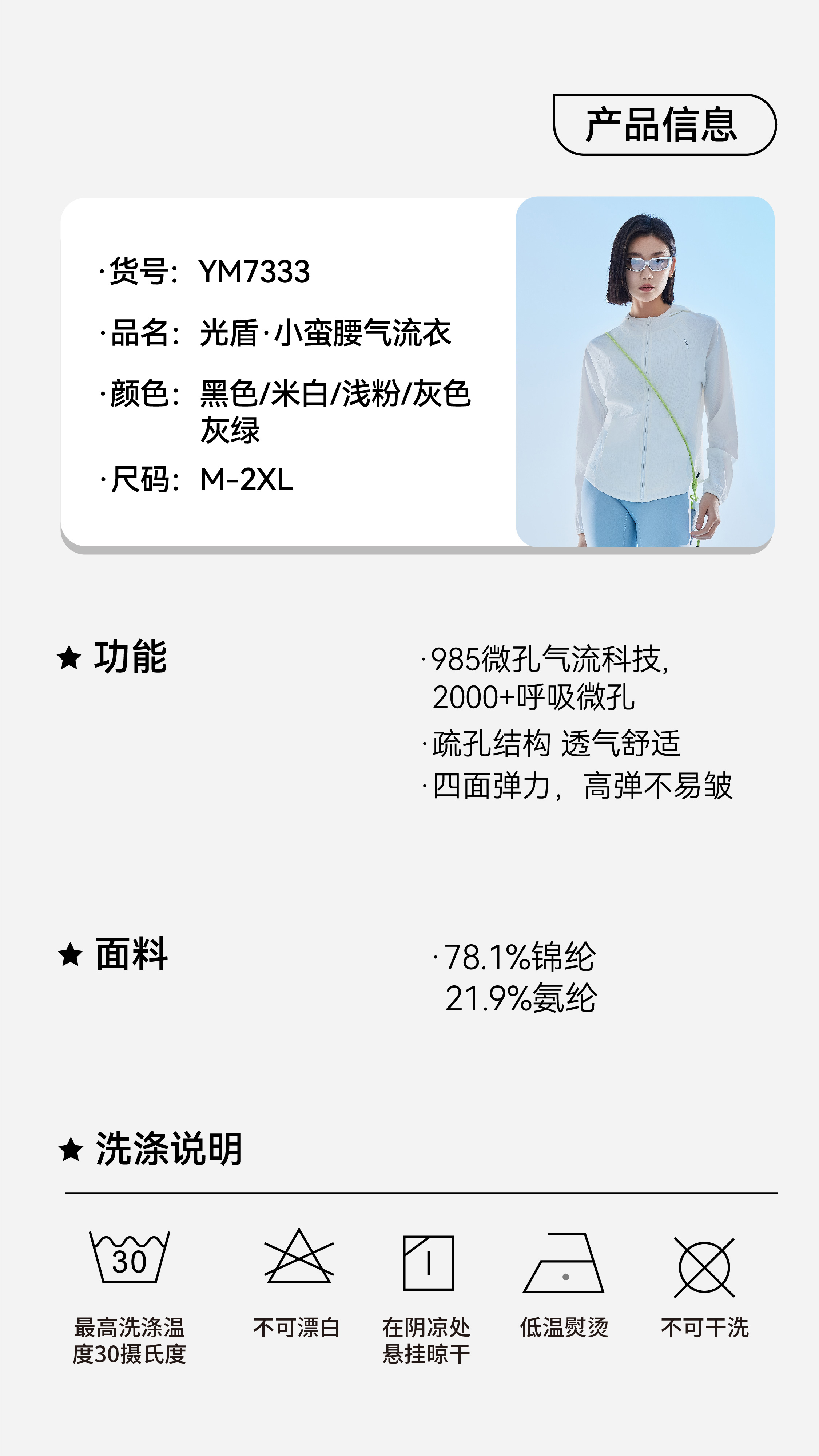 【防晒】女士夏季防晒衣小蛮腰气流衣带帽修身塑形防晒黑防晒黑【YM7333】