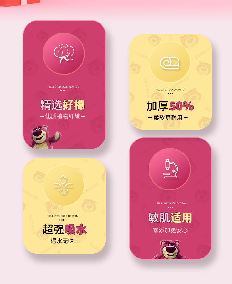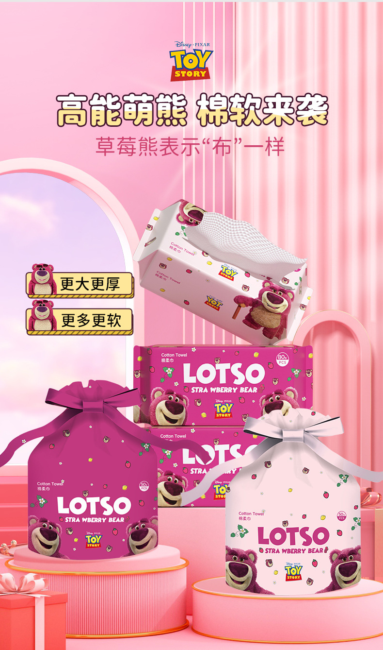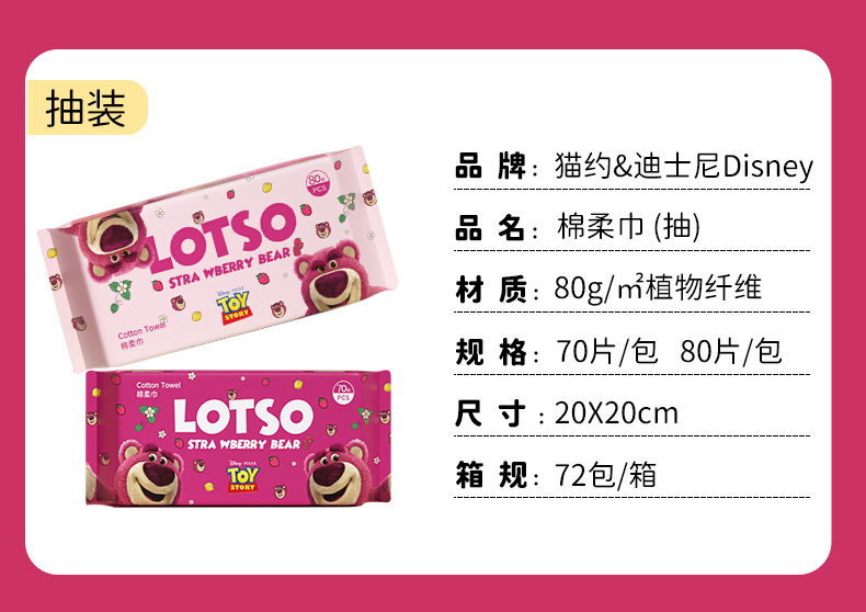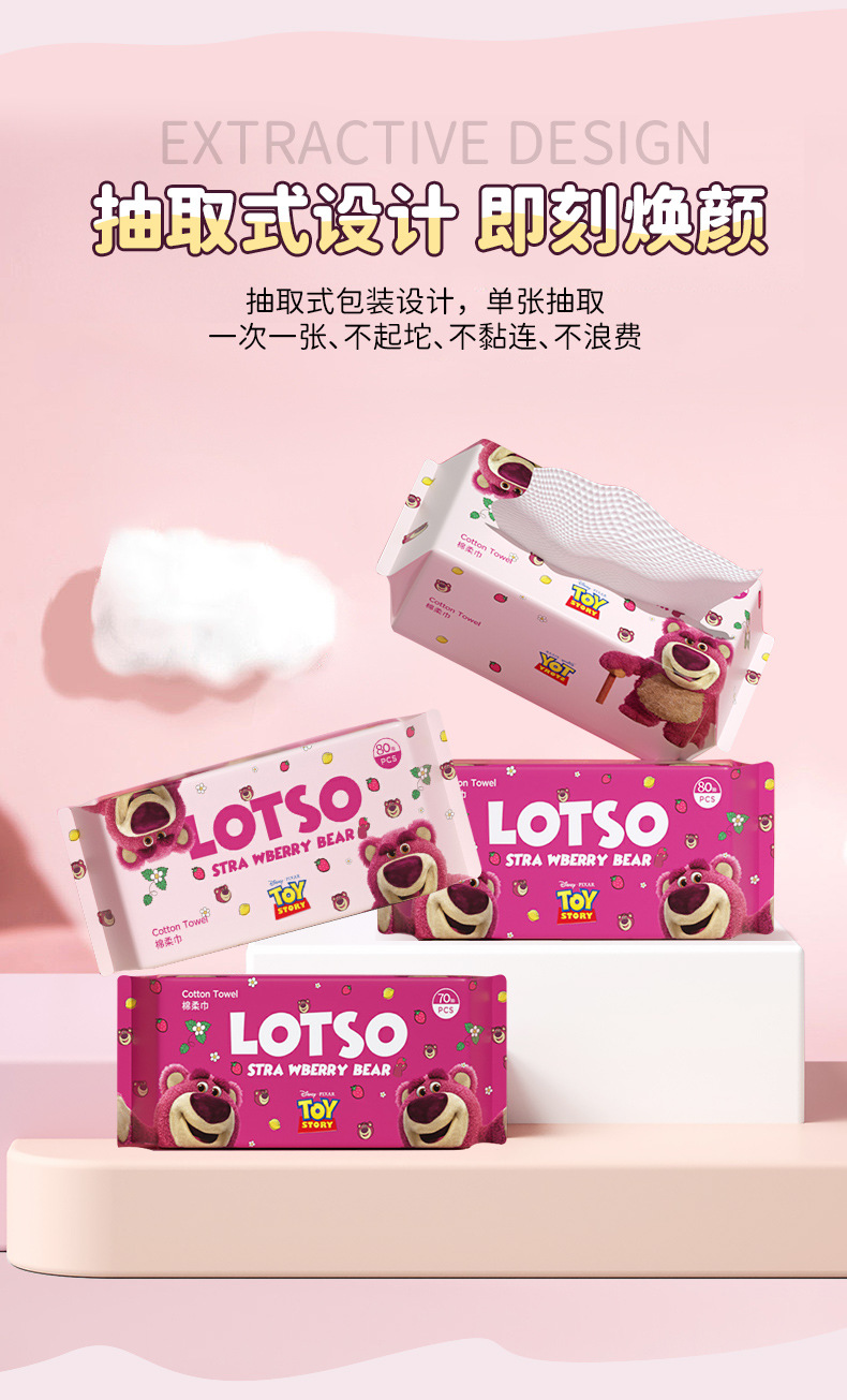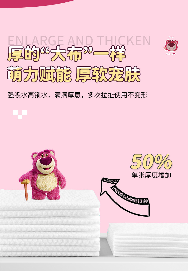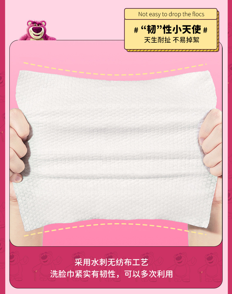迪士尼草莓熊一次性纯棉洗脸巾,婴儿级绵柔巾,密度加厚,美容院级洁面巾,柔软亲肤,给肌肤温柔呵护,适用于各种场合!