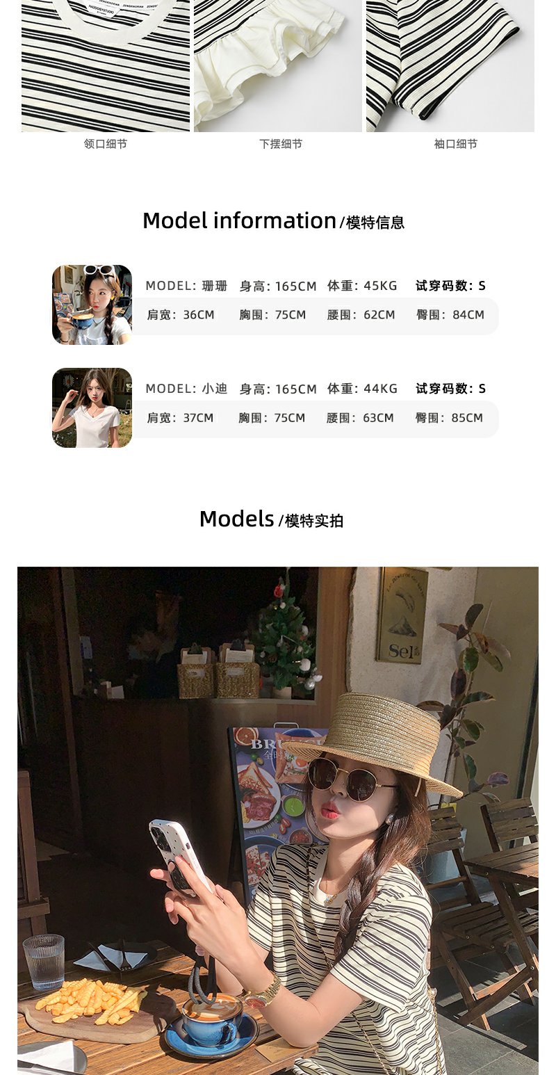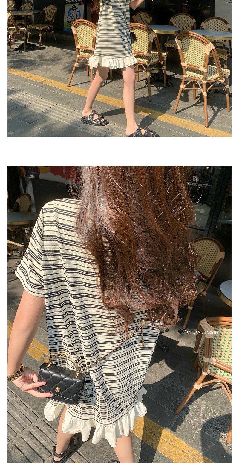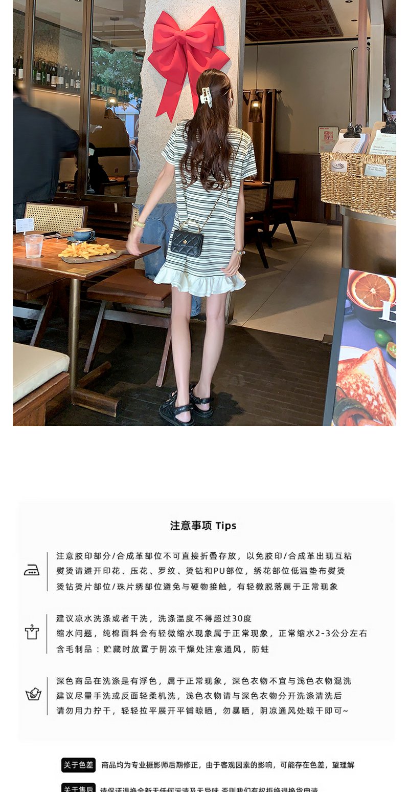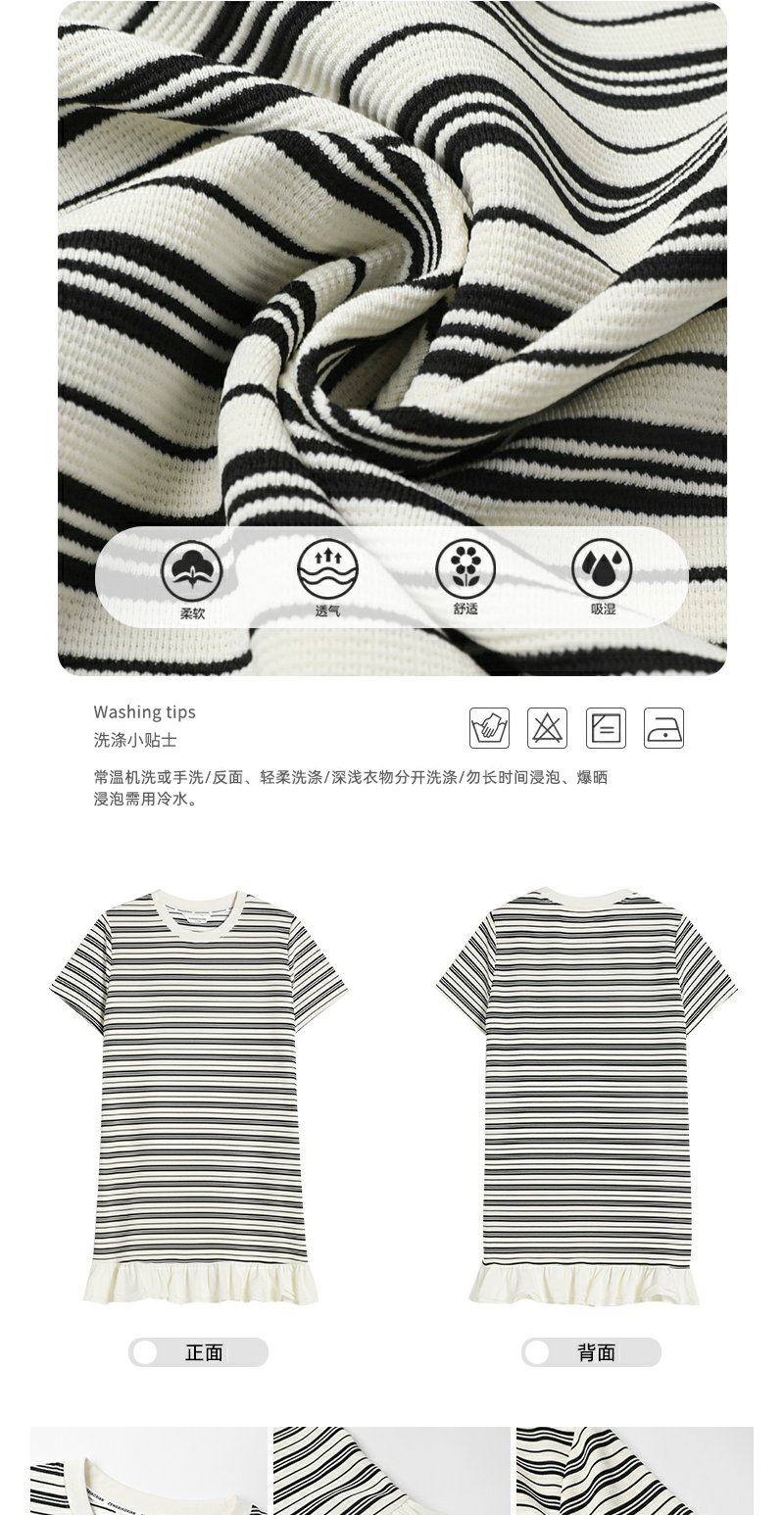 <曾小咸推荐>设计感下摆拼接条纹短袖连衣裙