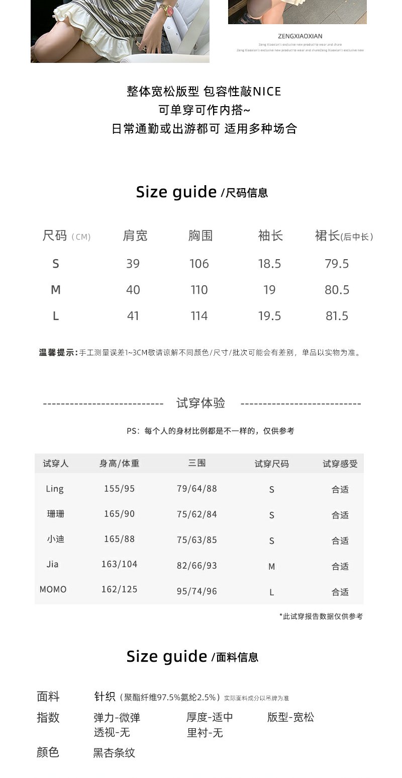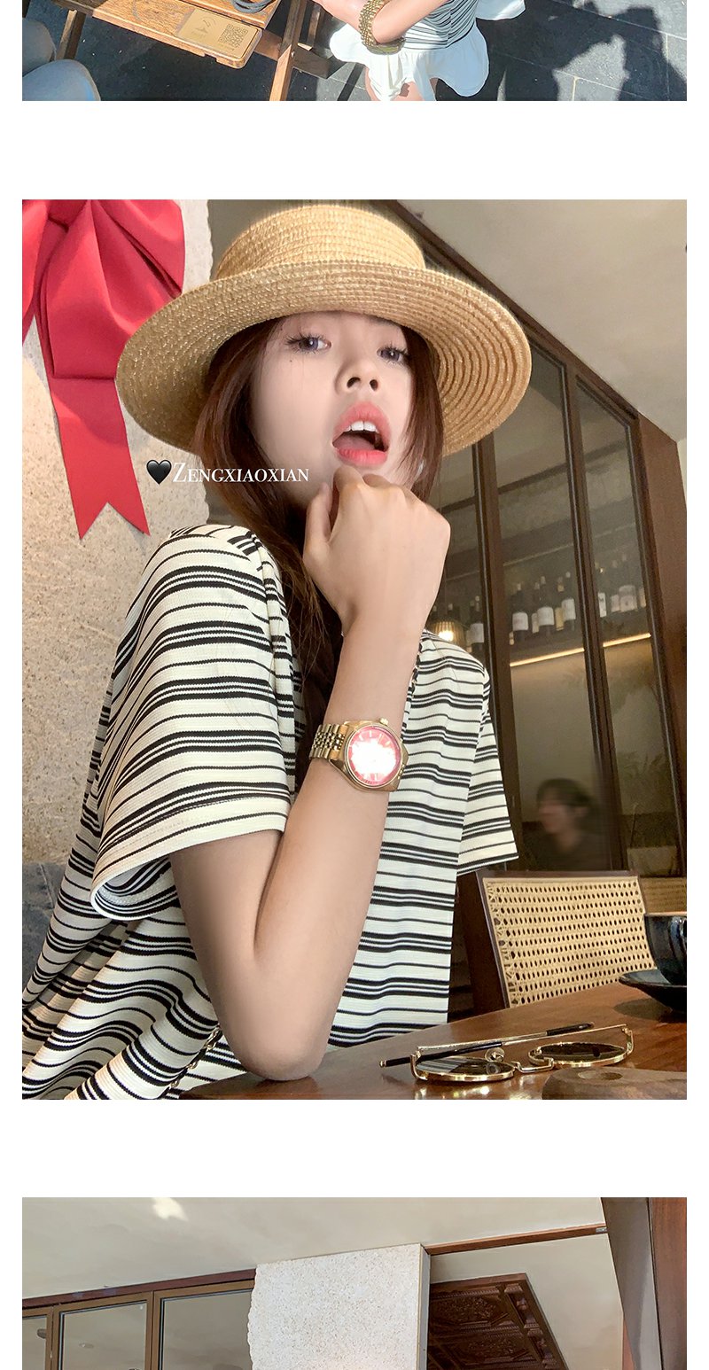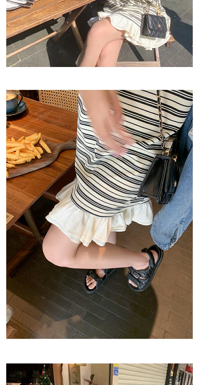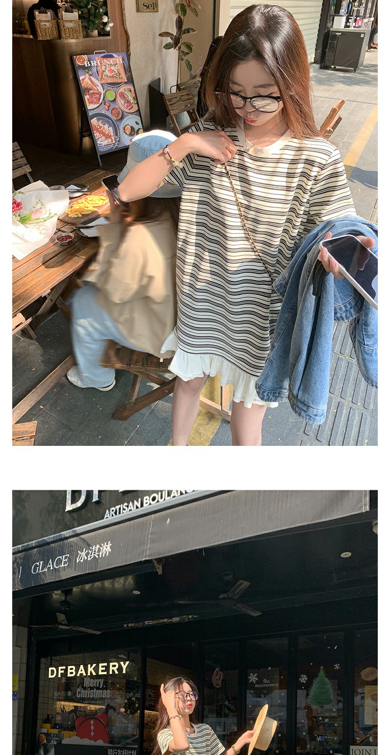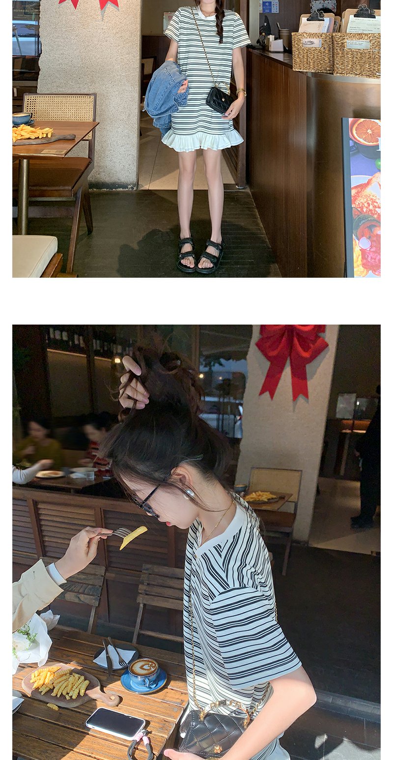 <曾小咸推荐>设计感下摆拼接条纹短袖连衣裙