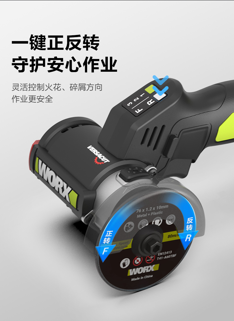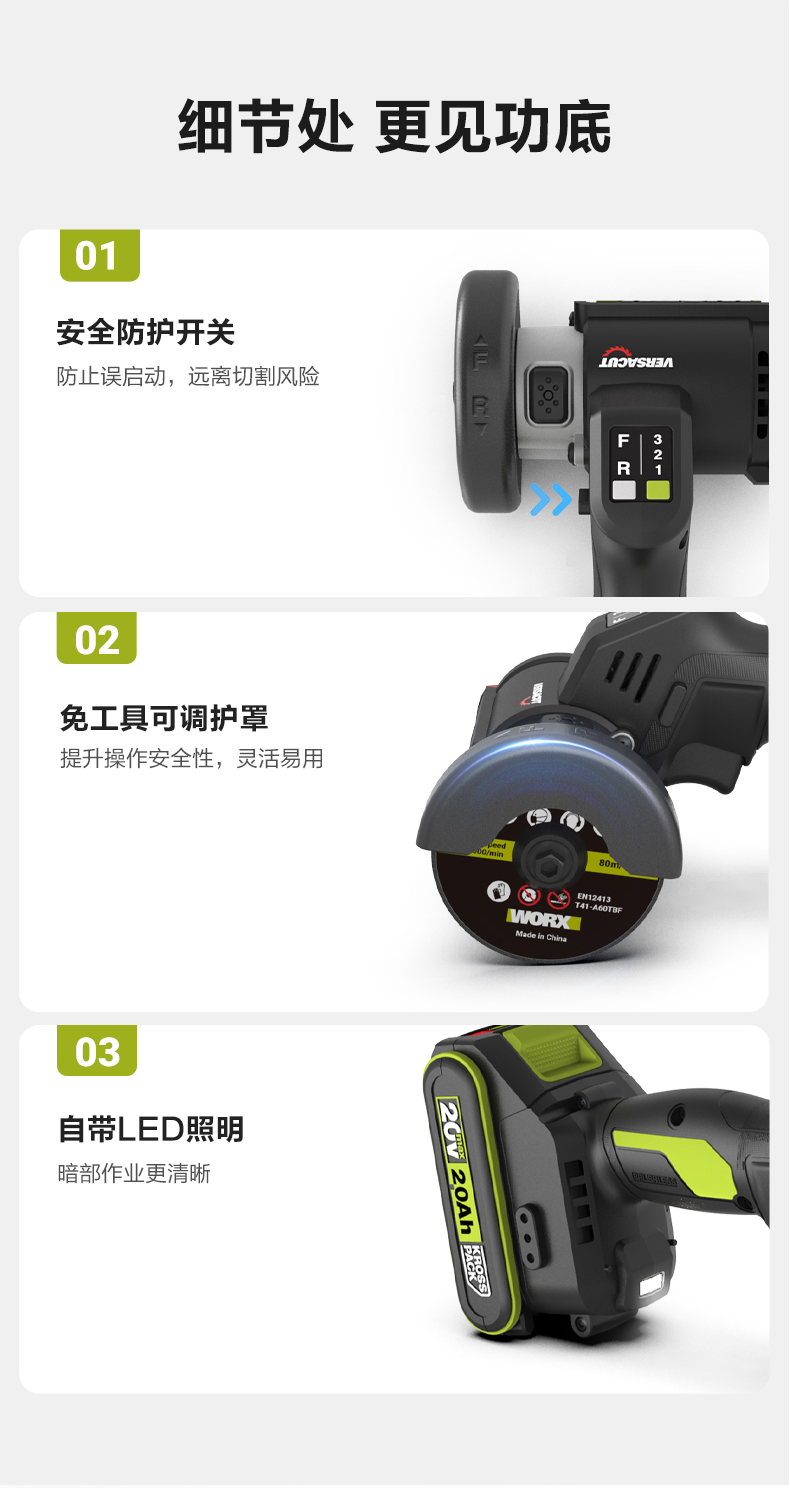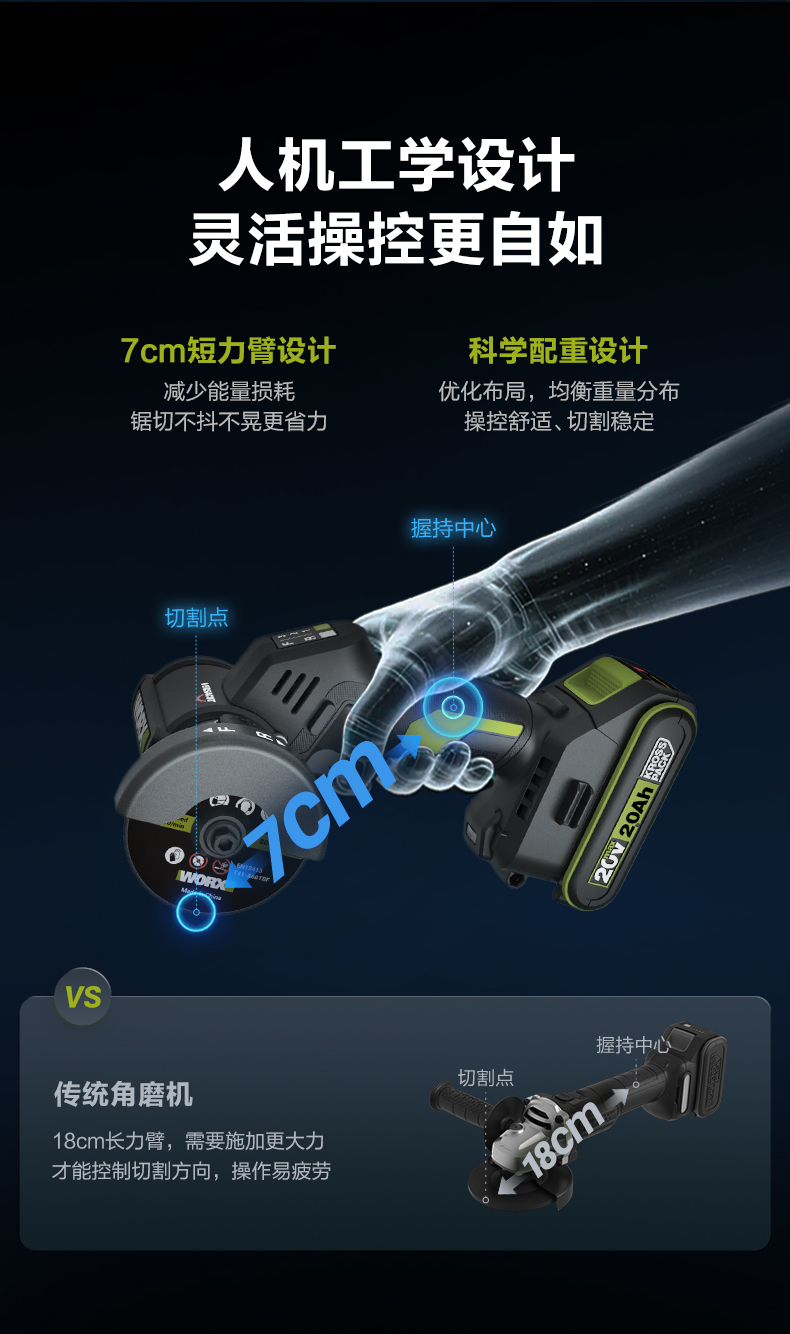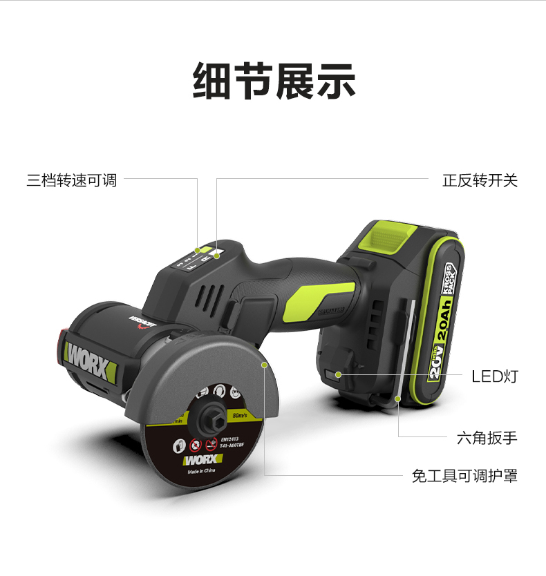 威克士工业级家装细手柄锂电角磨机WU805水电工大功率切割打磨机