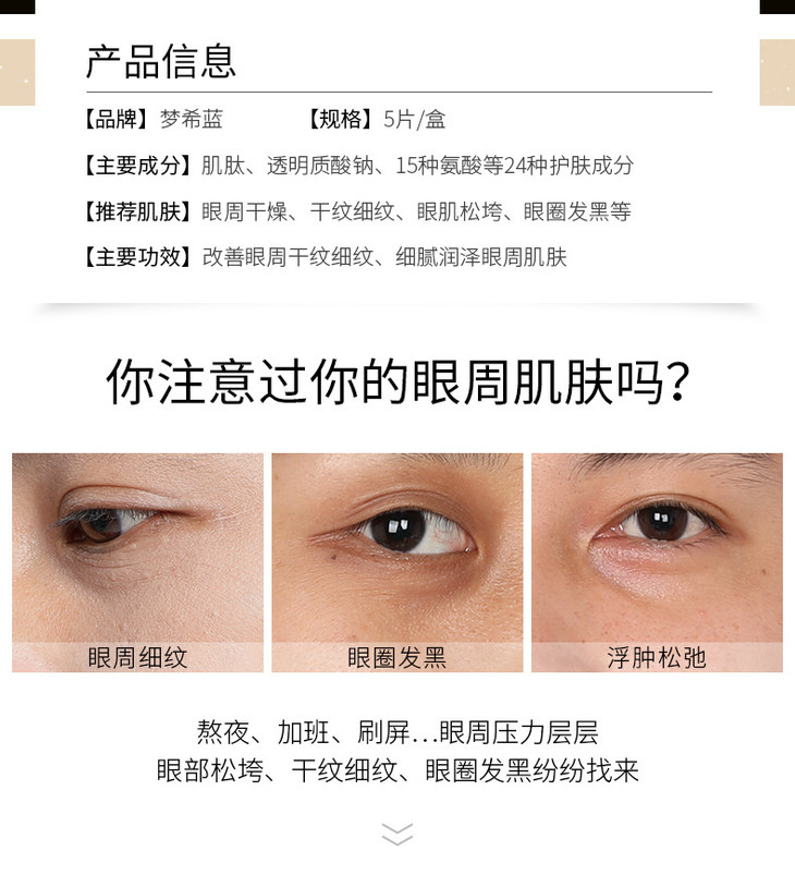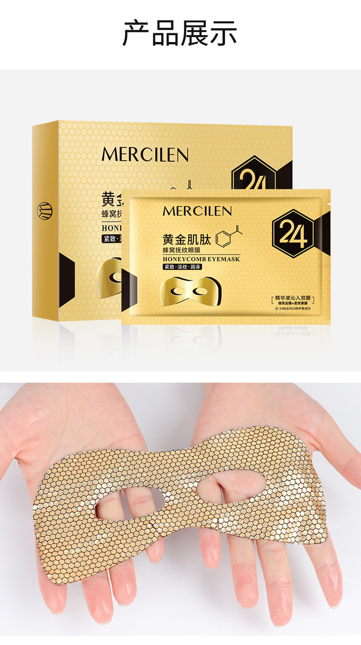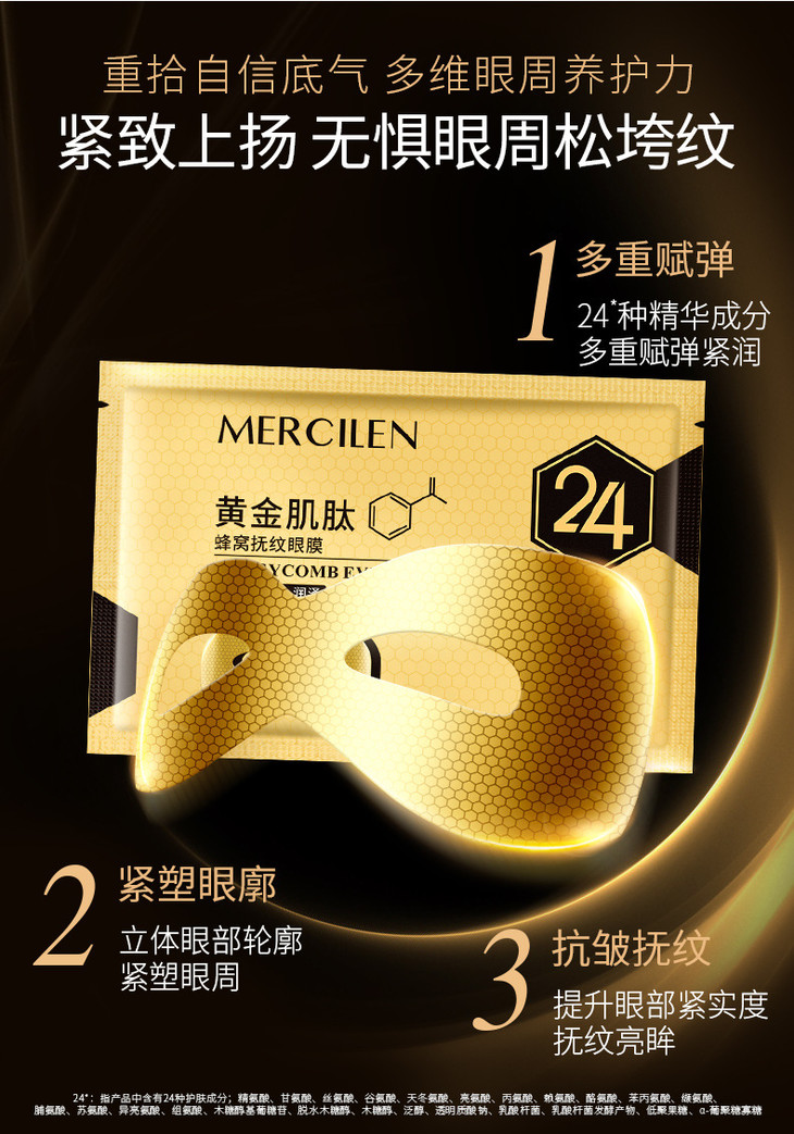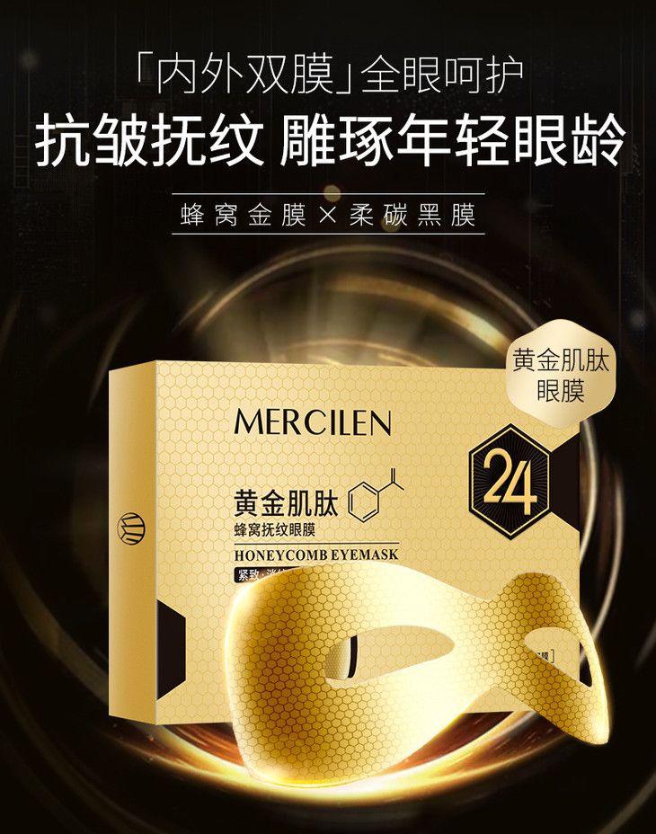 黄金肌肽蜂窝扶纹眼膜金箔精华淡化细纹黑眼圈眼袋提拉紧