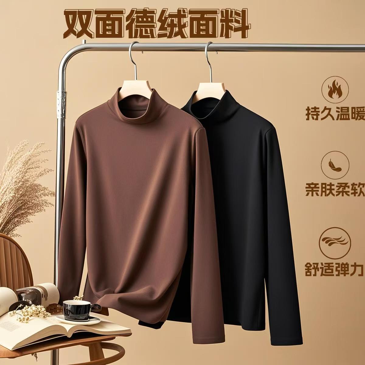 【买一送一】秋冬季内搭2025秋冬男款打底衫纯色简约修身半高领长袖