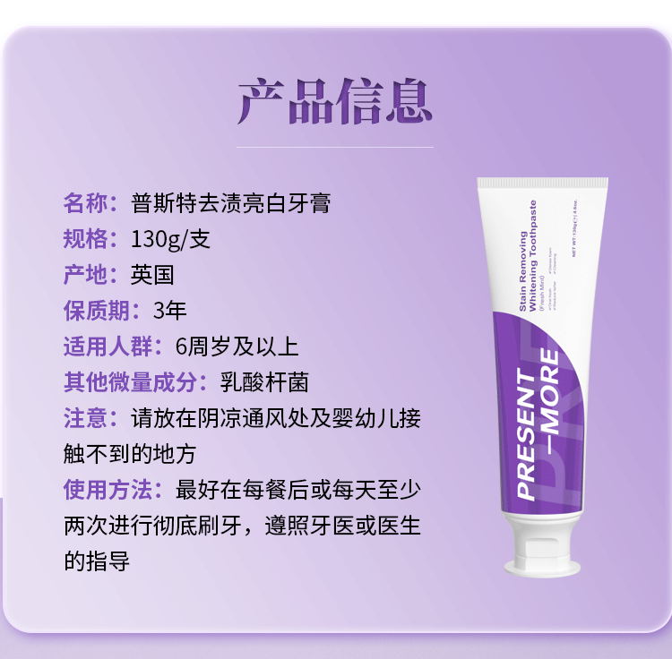 普斯特清新呵护牙膏 百香果香型-130g*2/普斯特莹白护理牙膏 青柠薄荷-130g*2/普斯特小苏打清新健白牙膏 薄荷香型-130g*2
