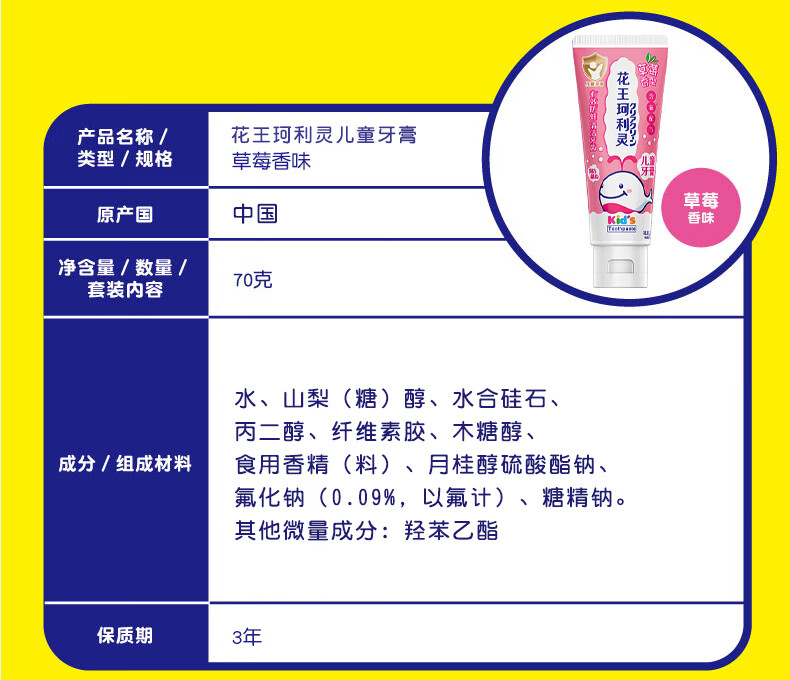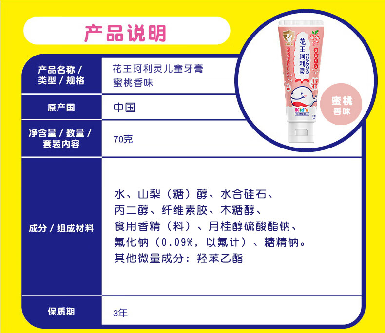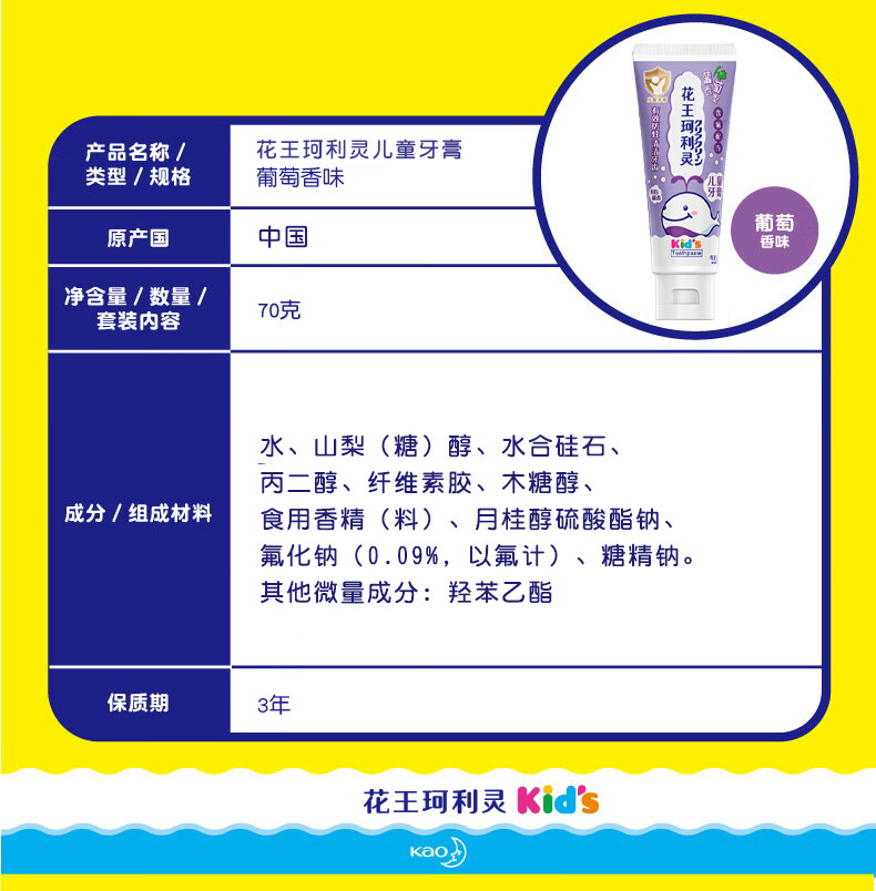 【2支装】KAO/花王 珂利灵儿童口腔清洁防蛀牙膏(草莓味/蜜桃味/葡萄味)70g/支