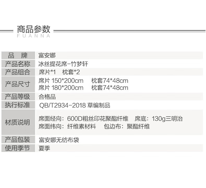 富安娜高档冰丝提花席-竹梦轩150*200cm