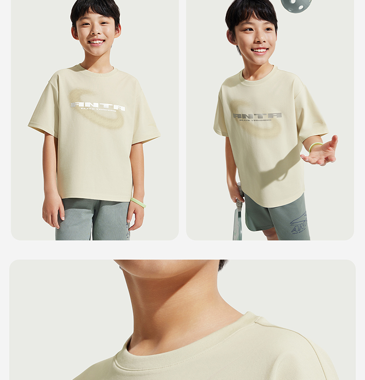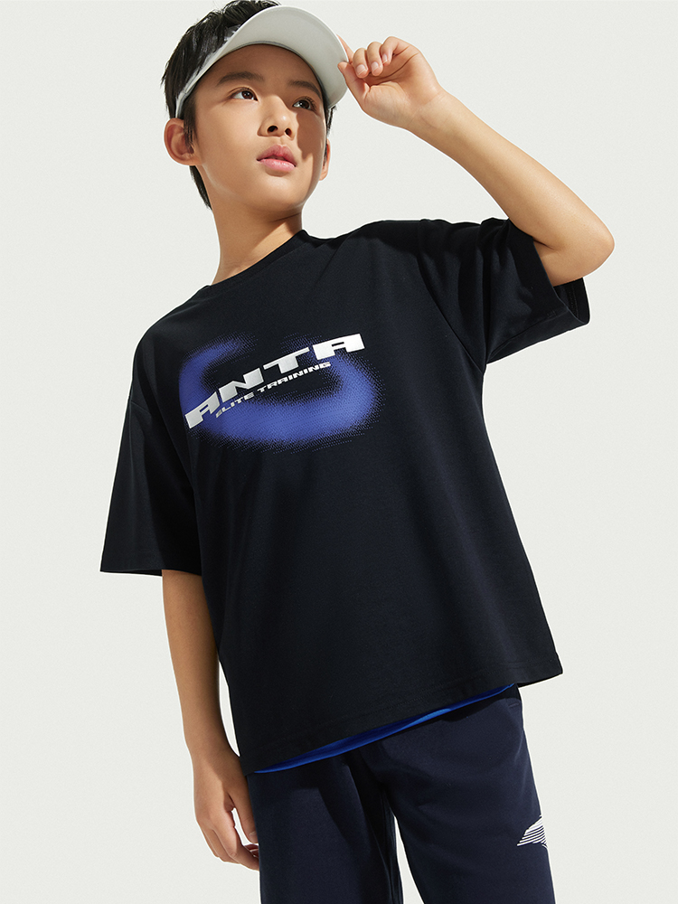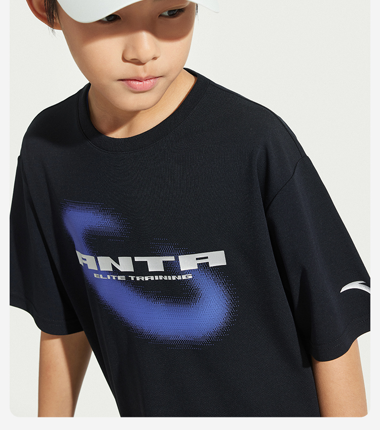 安踏液柔冰肤儿童男大童针织短袖2025夏季新款透气亲肤运动短T恤T52527112
