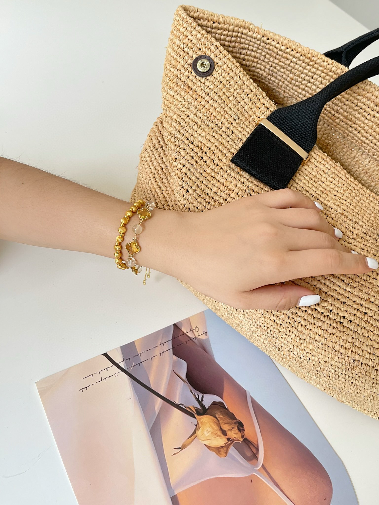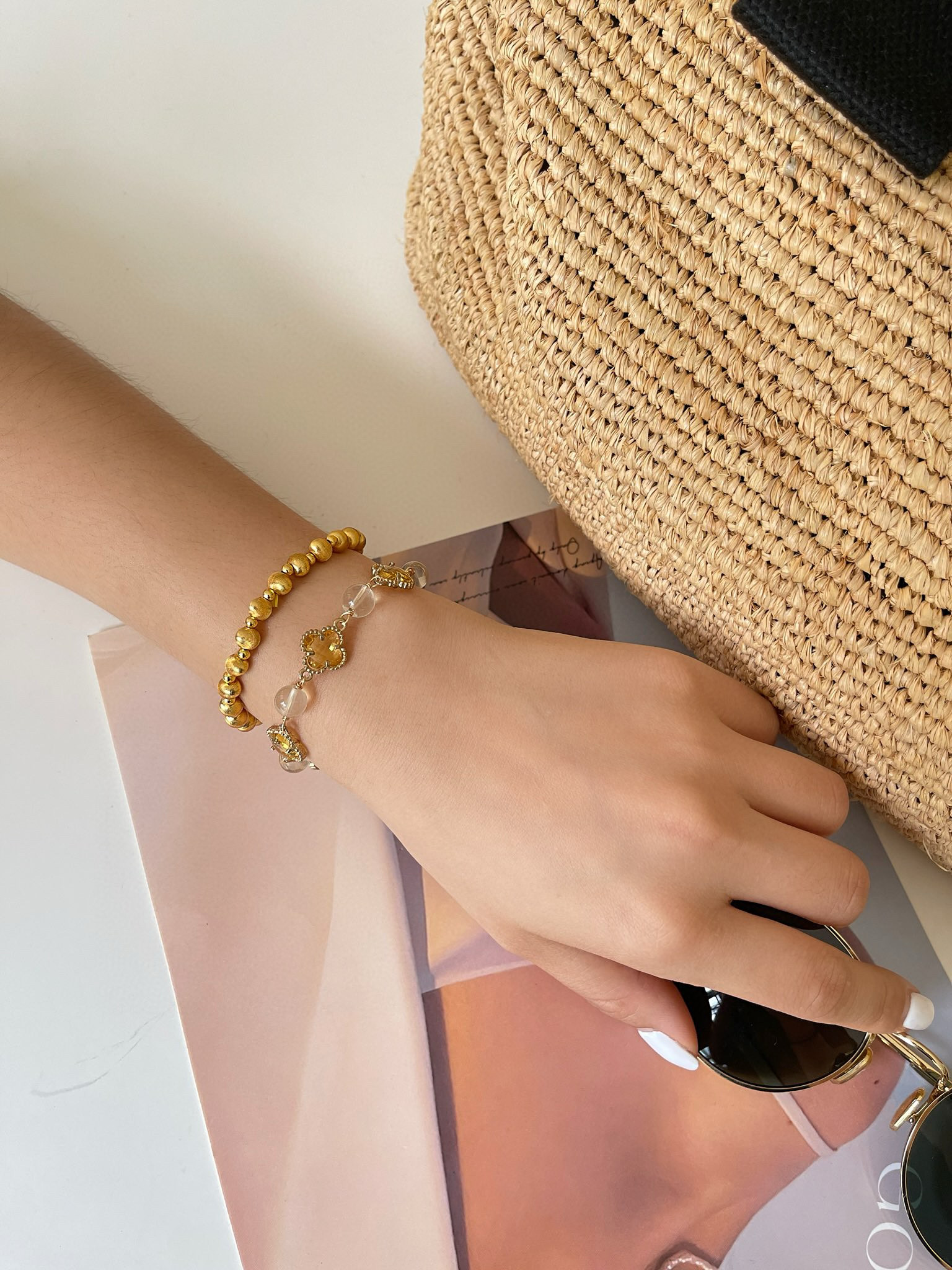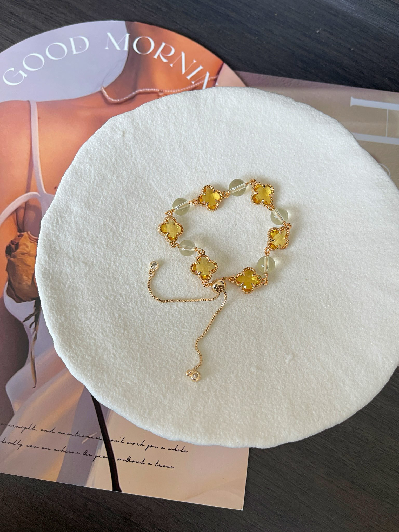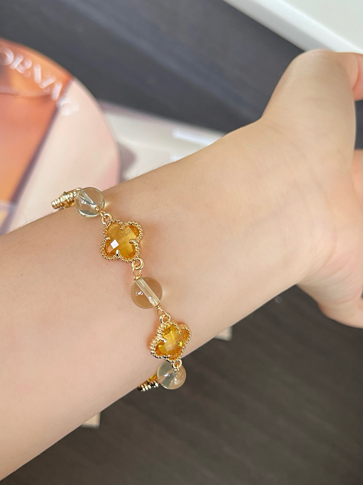 四叶草黄水晶手链: