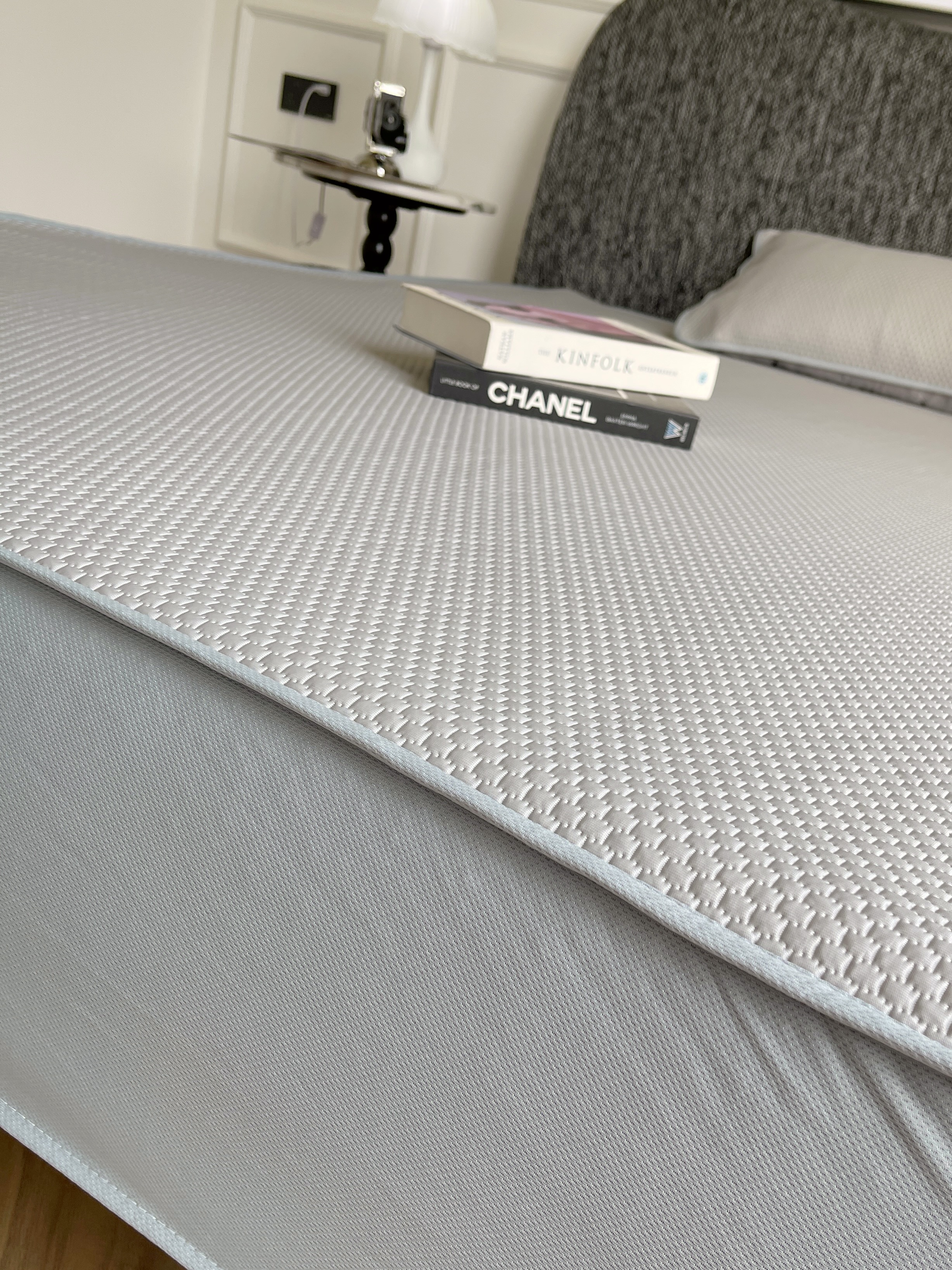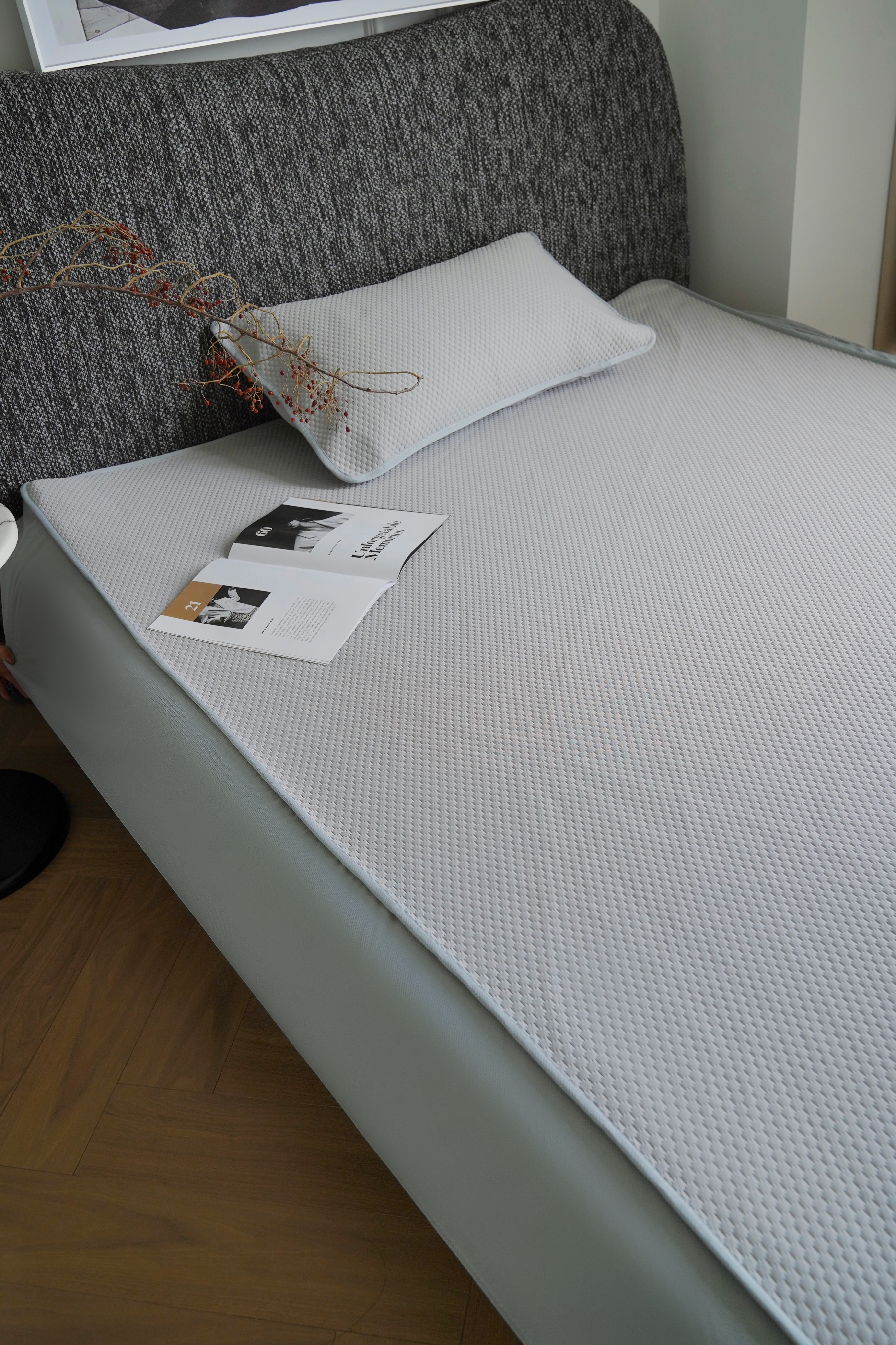 加厚冰丝材质:冰丝是一种改性聚酯纤维,触感凉爽丝滑,吸湿性优于传统竹席、草席,适合空调房使用。