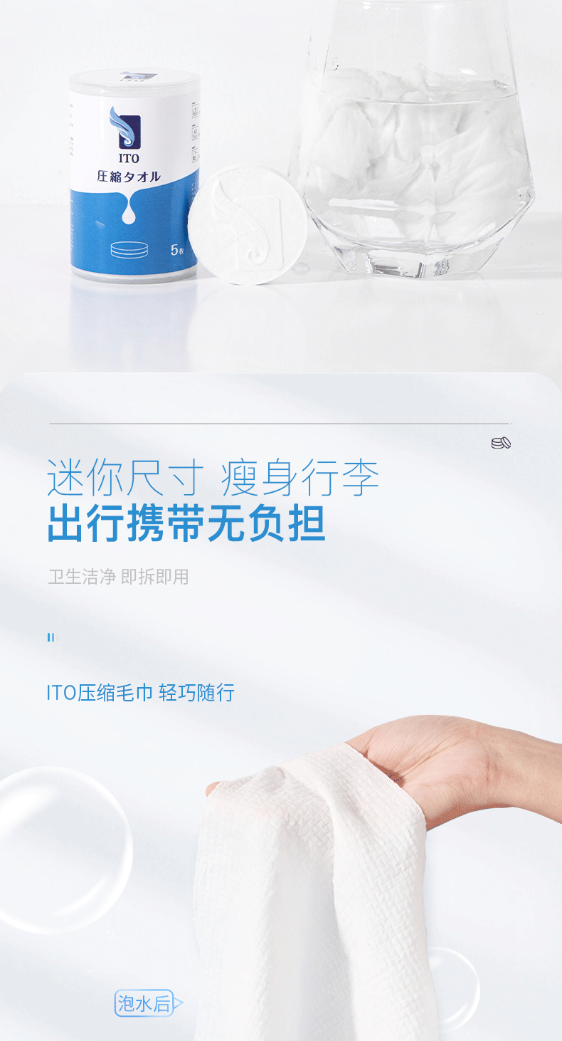 ITO压缩毛巾棉柔巾一次性洁面巾便携压缩毛巾5粒