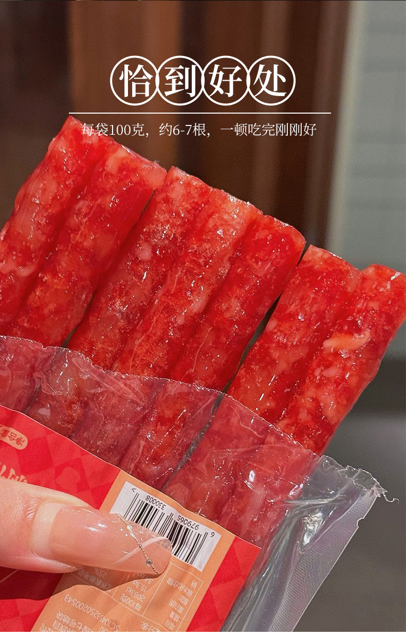 4、真空独立包装袋 ,每袋100克,约6-7根一顿吃完刚刚好;