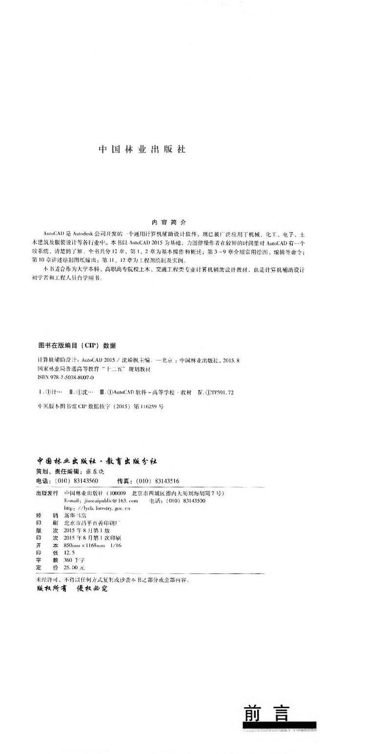 计算机辅助设计-Auto CAD (2015) 8007国家林业局普通高等教育十二五规划教材 中国林业出版社