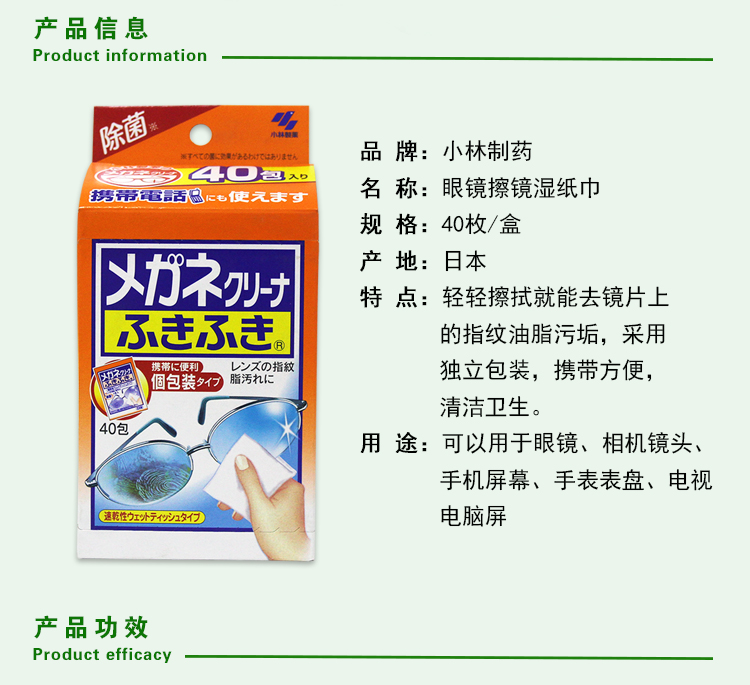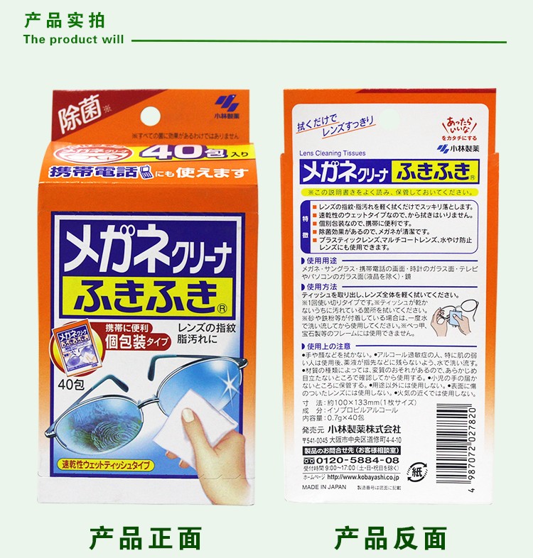 KOBAYASHI小林制药 眼镜擦拭镜片清洁纸 40片/盒